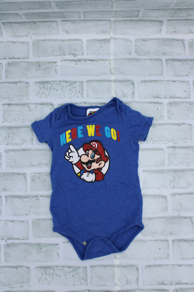 Super Mario, Blue Diaper Shirt, some wear, 12-18 Months