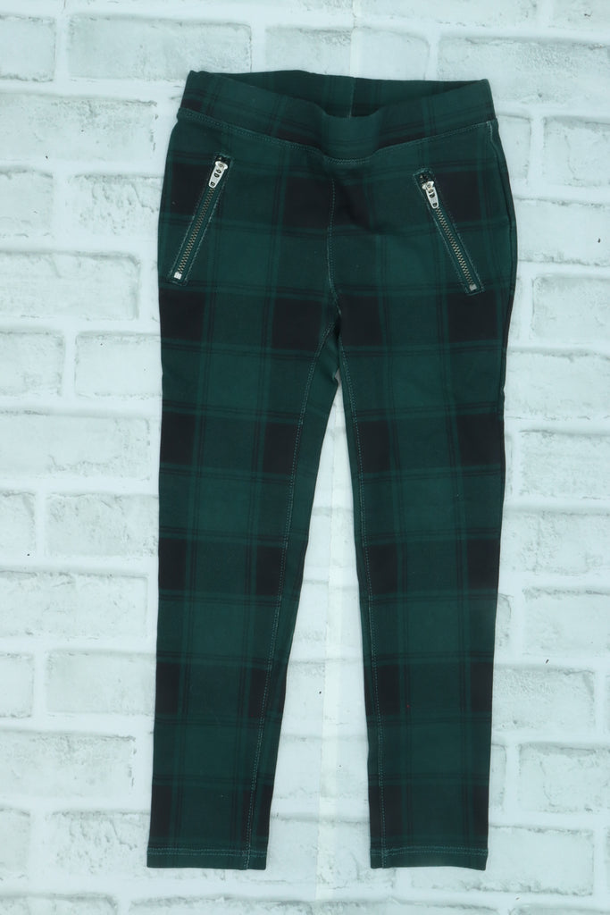 Children's Place, Green Plaid Stretch Pants with Zippered Pockets, Size 5