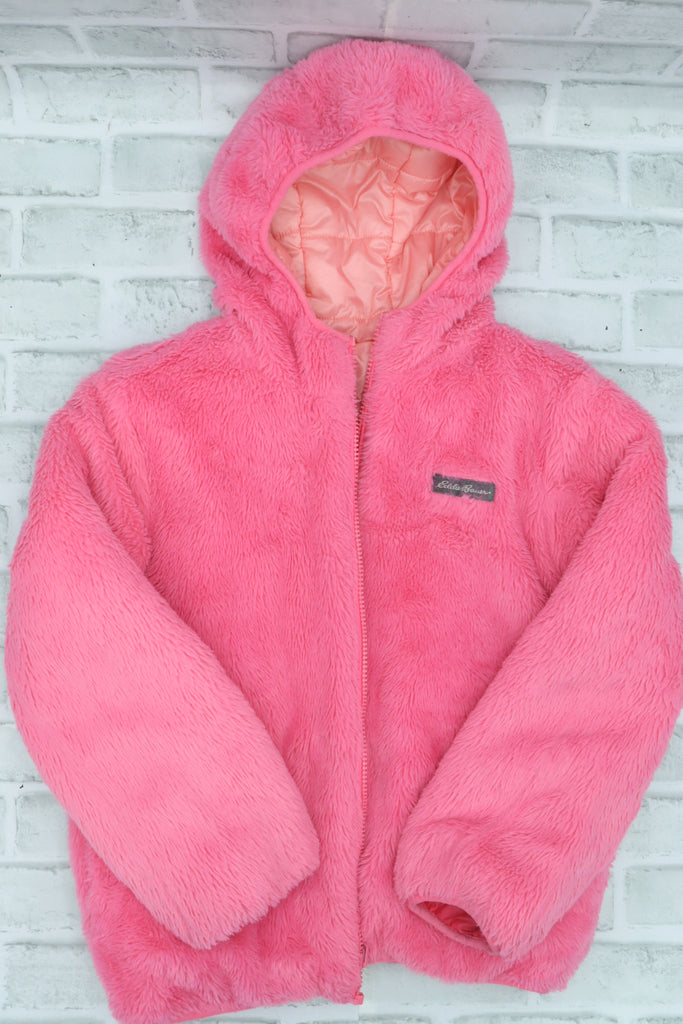 Eddie Bauer, Reversible Puffer/Fuzzy Jacket, small nick in elbow, Large (10/12)