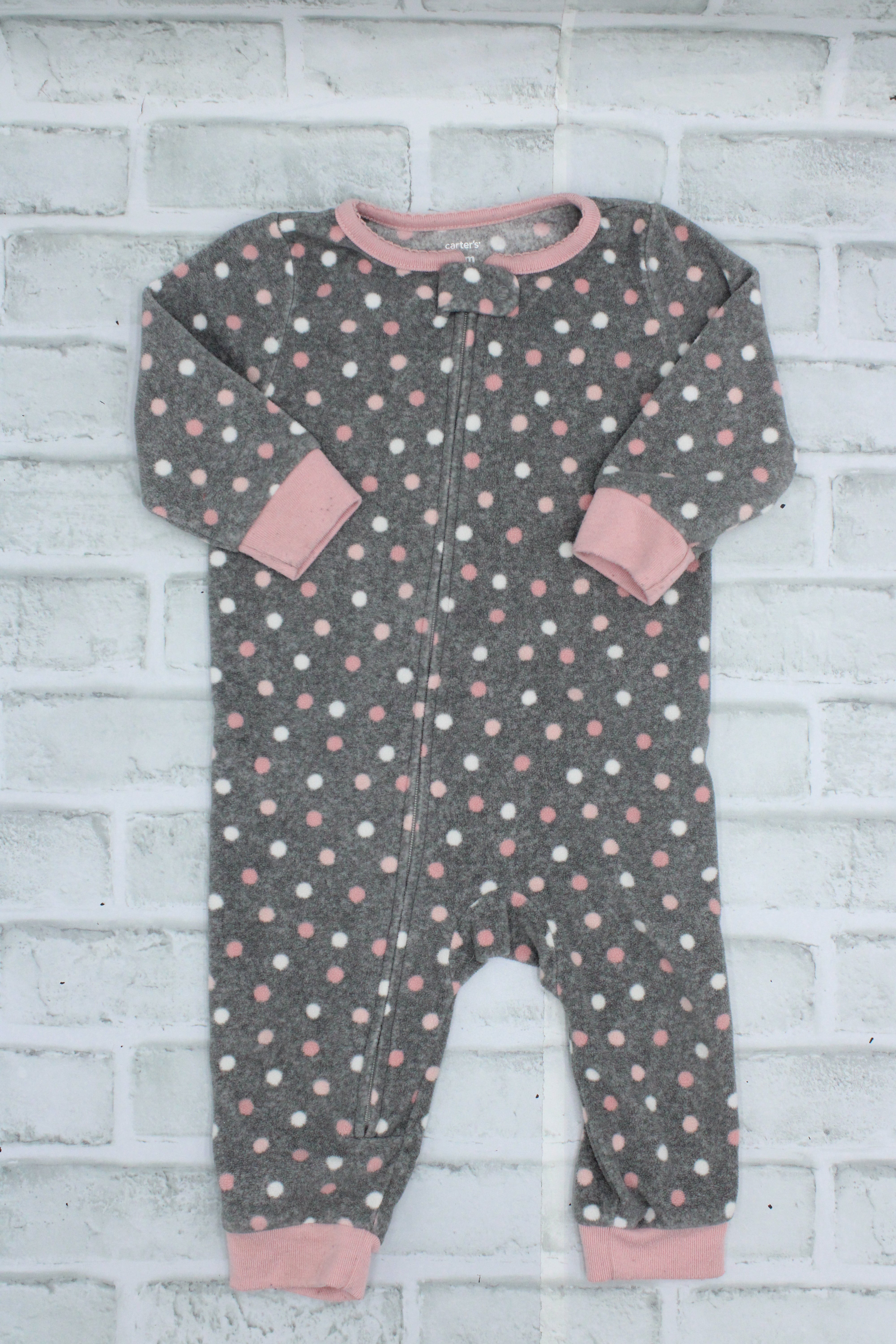 Carters, Grey Polka Dot Fleece Footless Sleeper, 12 Months