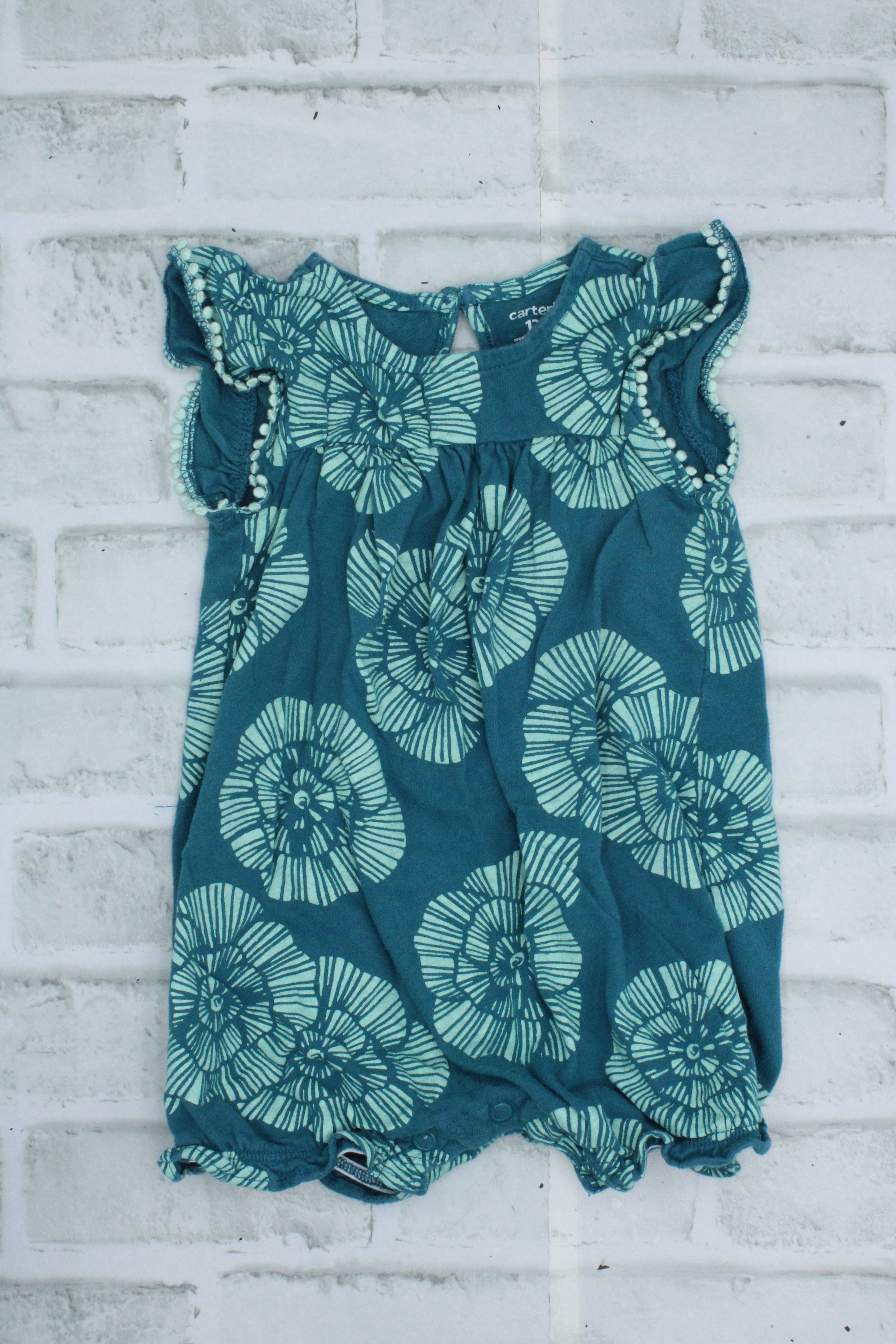 Carters, Blue Floral Romper, 12 Months