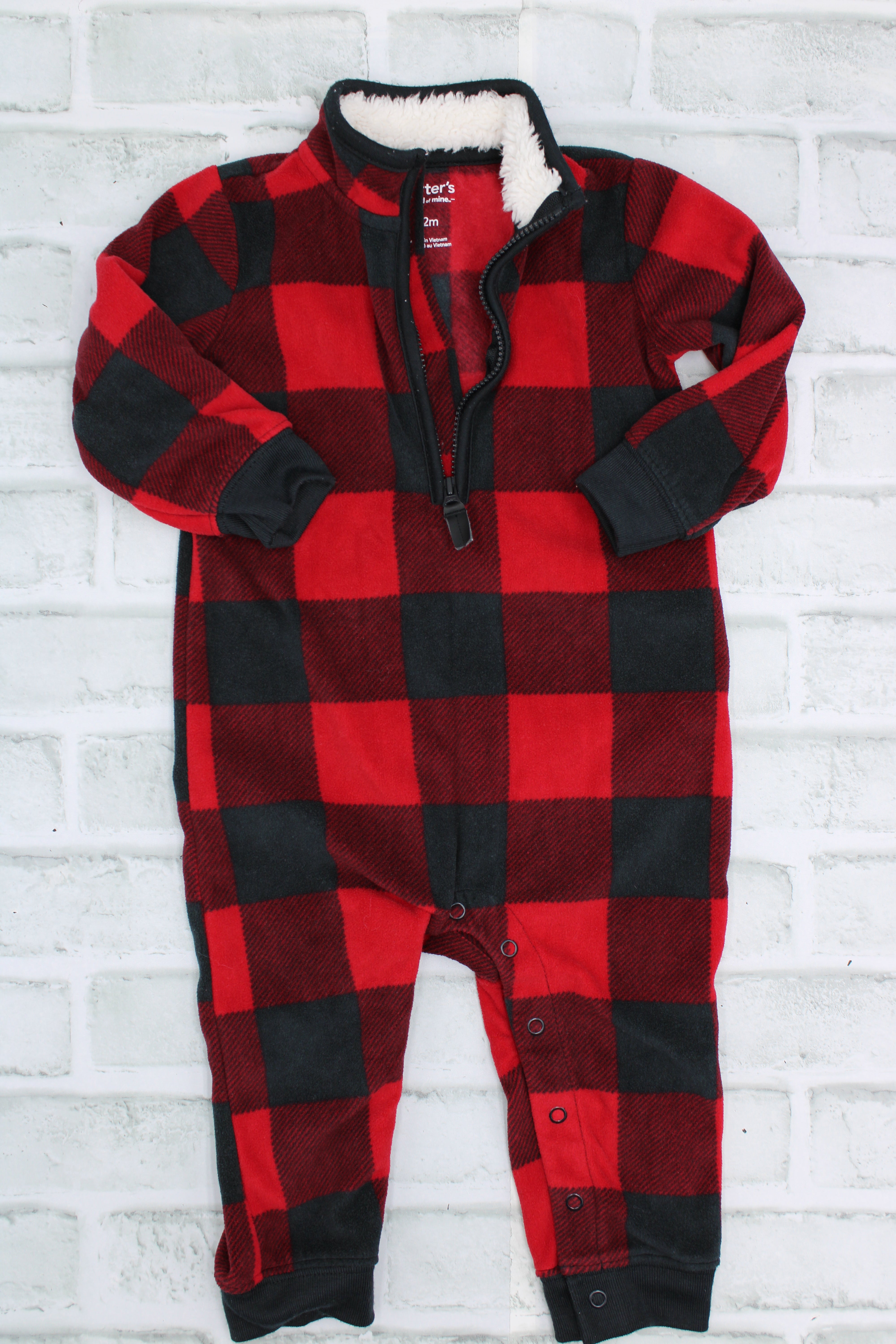 Carters, Red plaid Fleece Onesie LIKE NEW, 12 Months