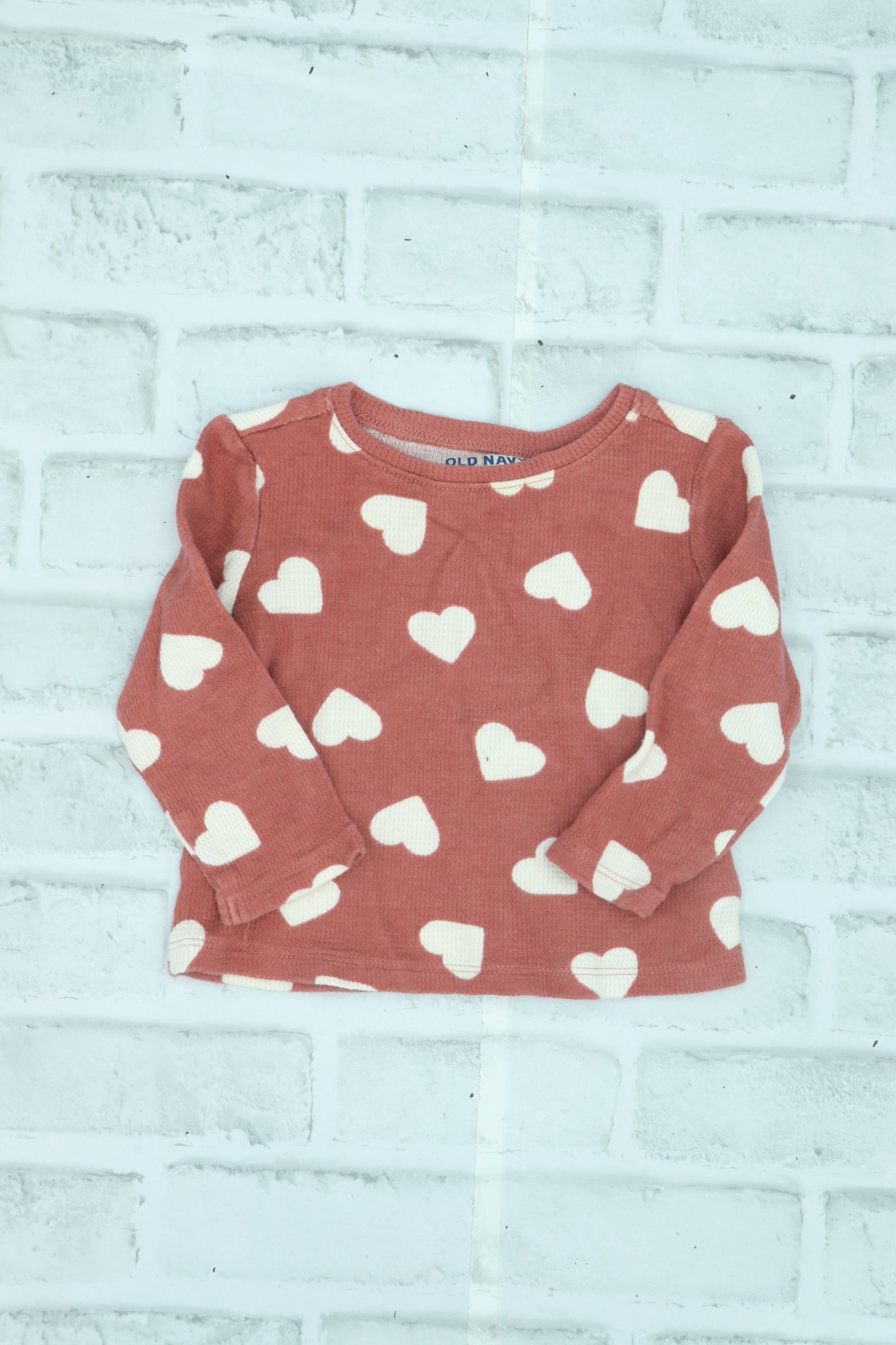 Old Navy, Hearts Waffle Long Sleeve, 12-18 Months