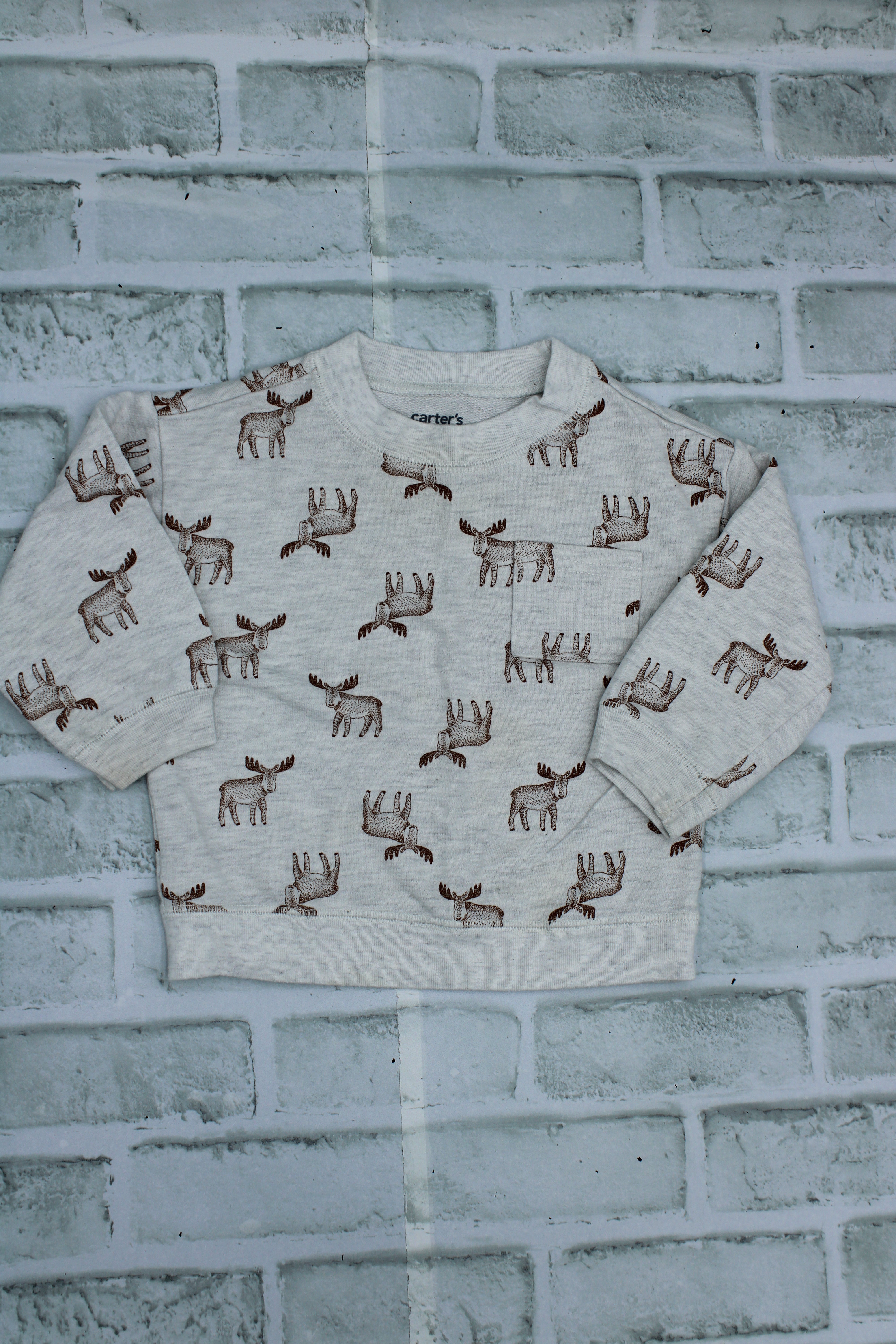 Carters, White Moose Crewneck, 12 Months
