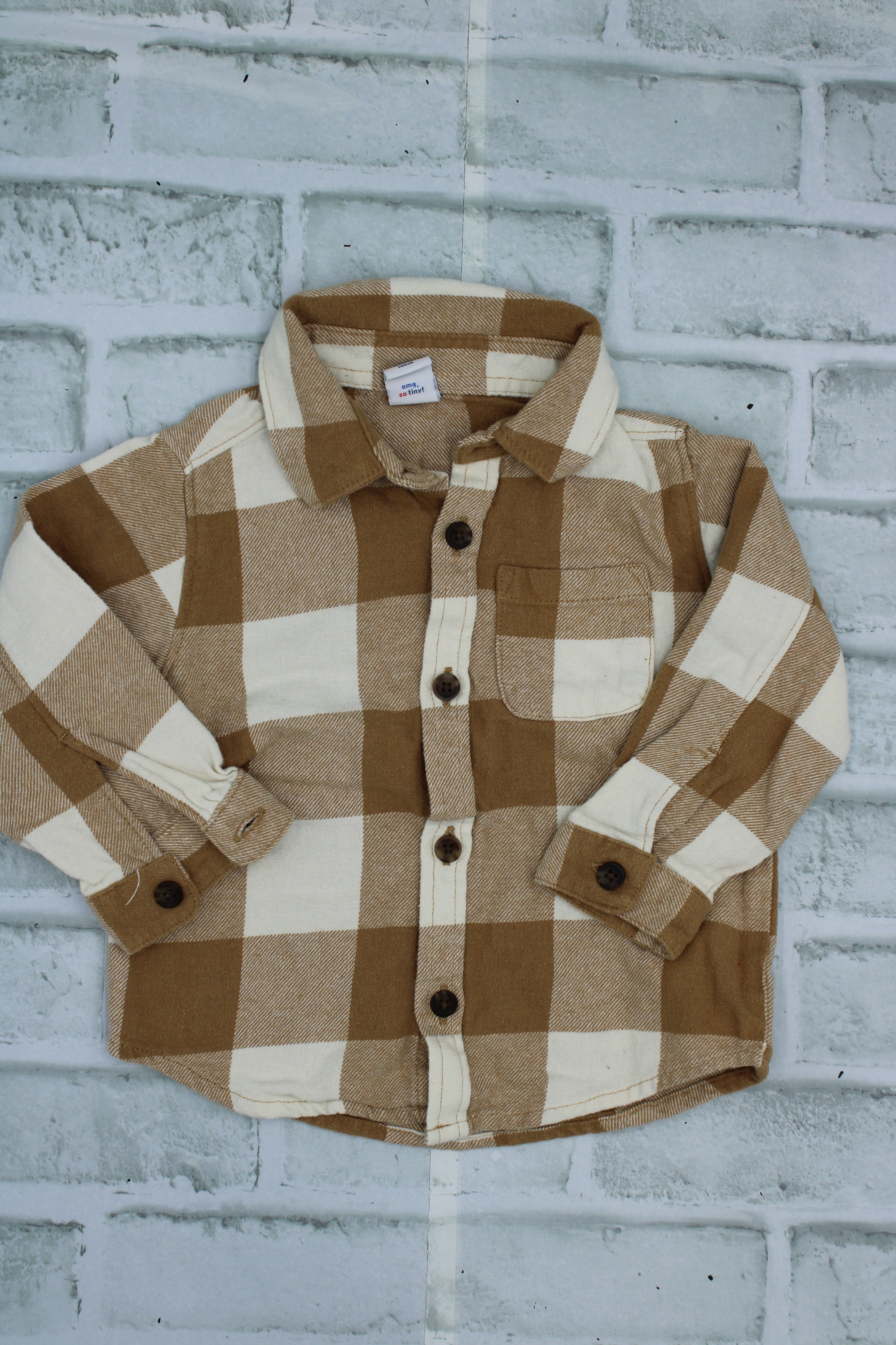 Old Navy, Brown Plaid Button Up, 12-18 Months