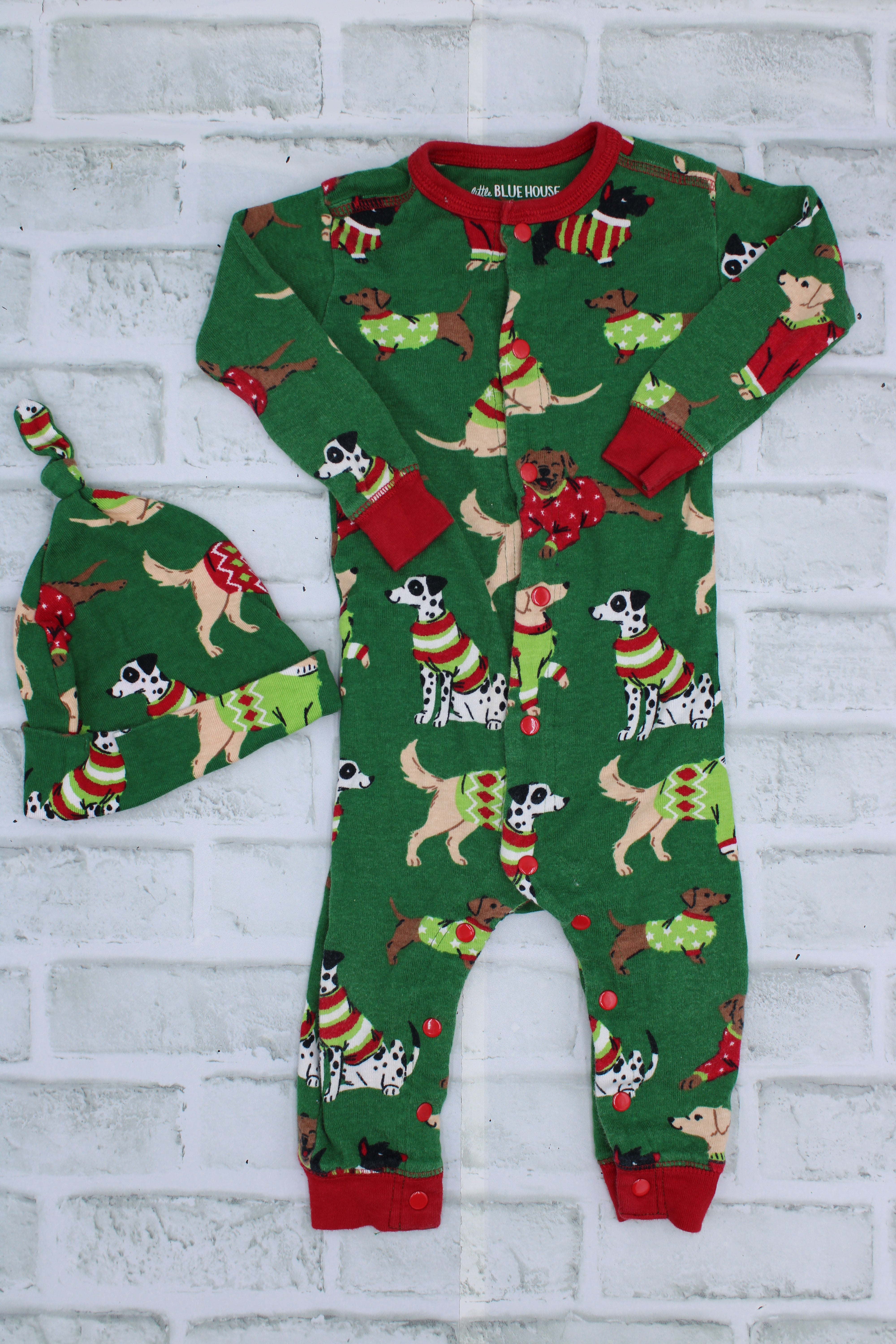 Little Blue House, Green Christmas Dog Onesie Snap Up Sleeper, 12-18 Months