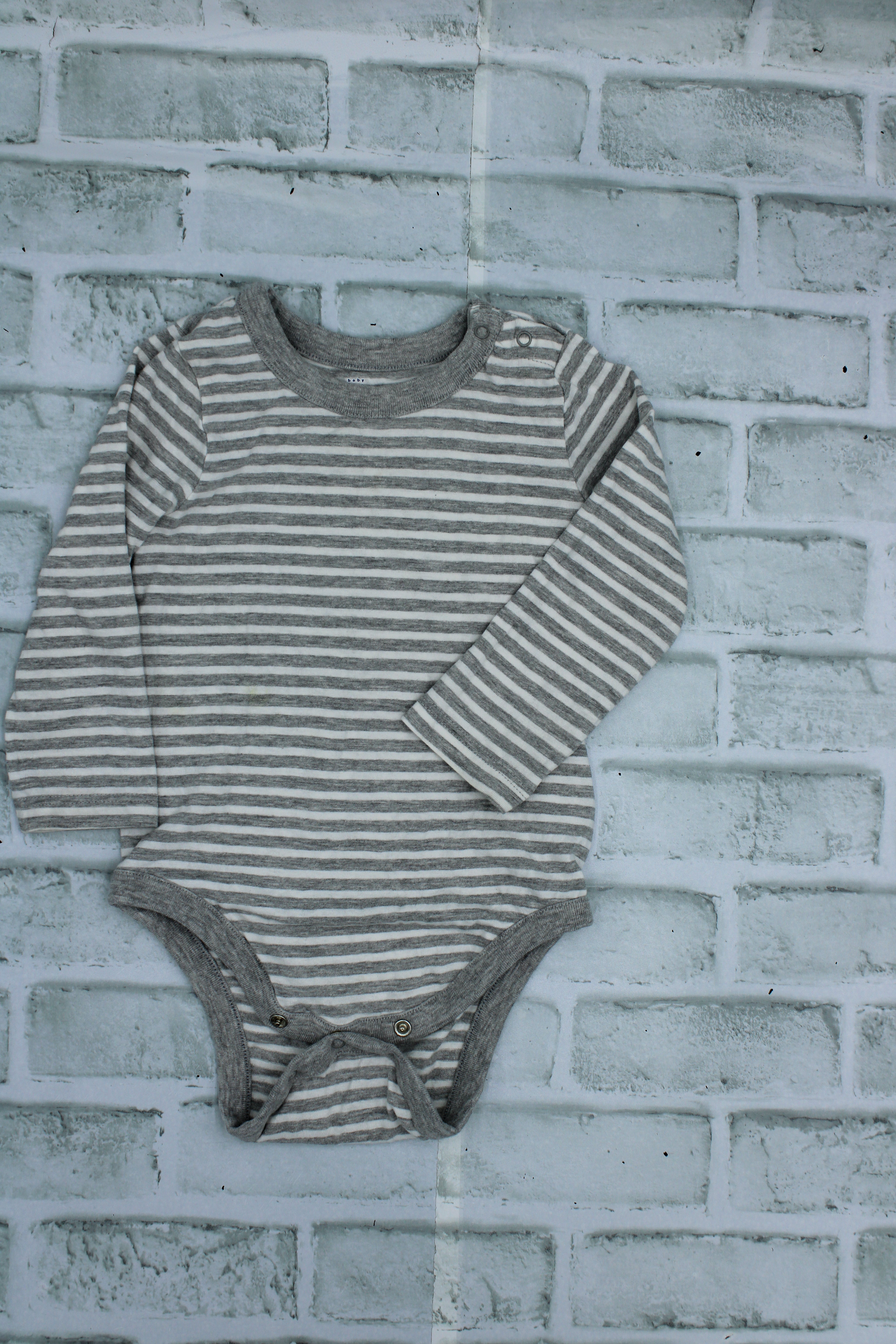 Baby Gap, Grey Striped Diaper shirt, small stain on front, 12-18 Months is backordered and will ship as soon as it is back in stock.