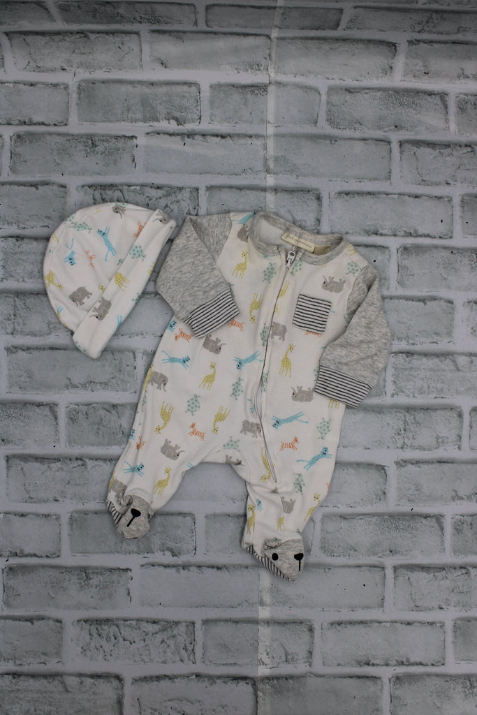 First Impressions, Giraffe Sleeper with hat, light staining on neck, Newborn