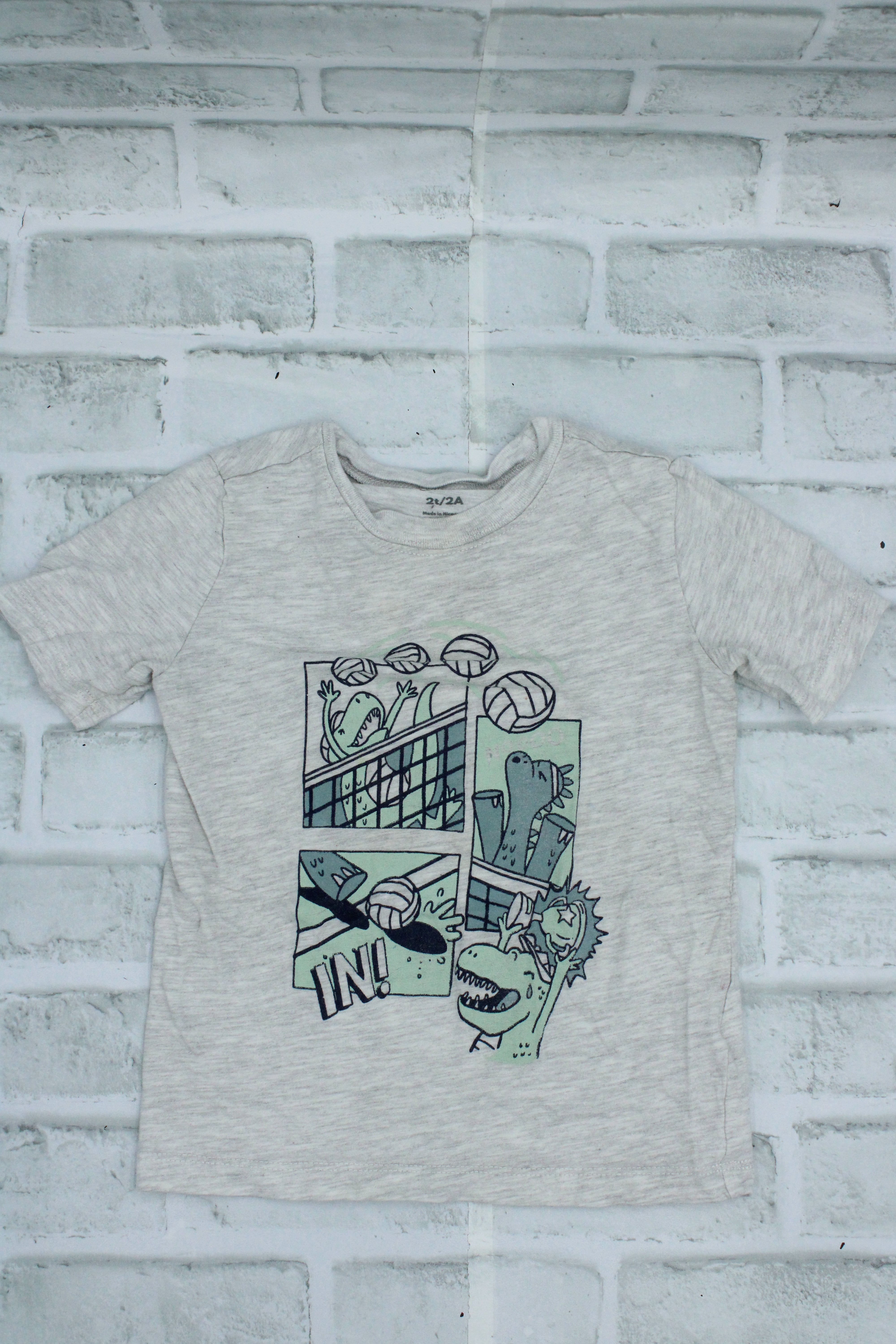 Carters, Grey Volleyball Tshirt, light wear around neckline, 2T is backordered and will ship as soon as it is back in stock.