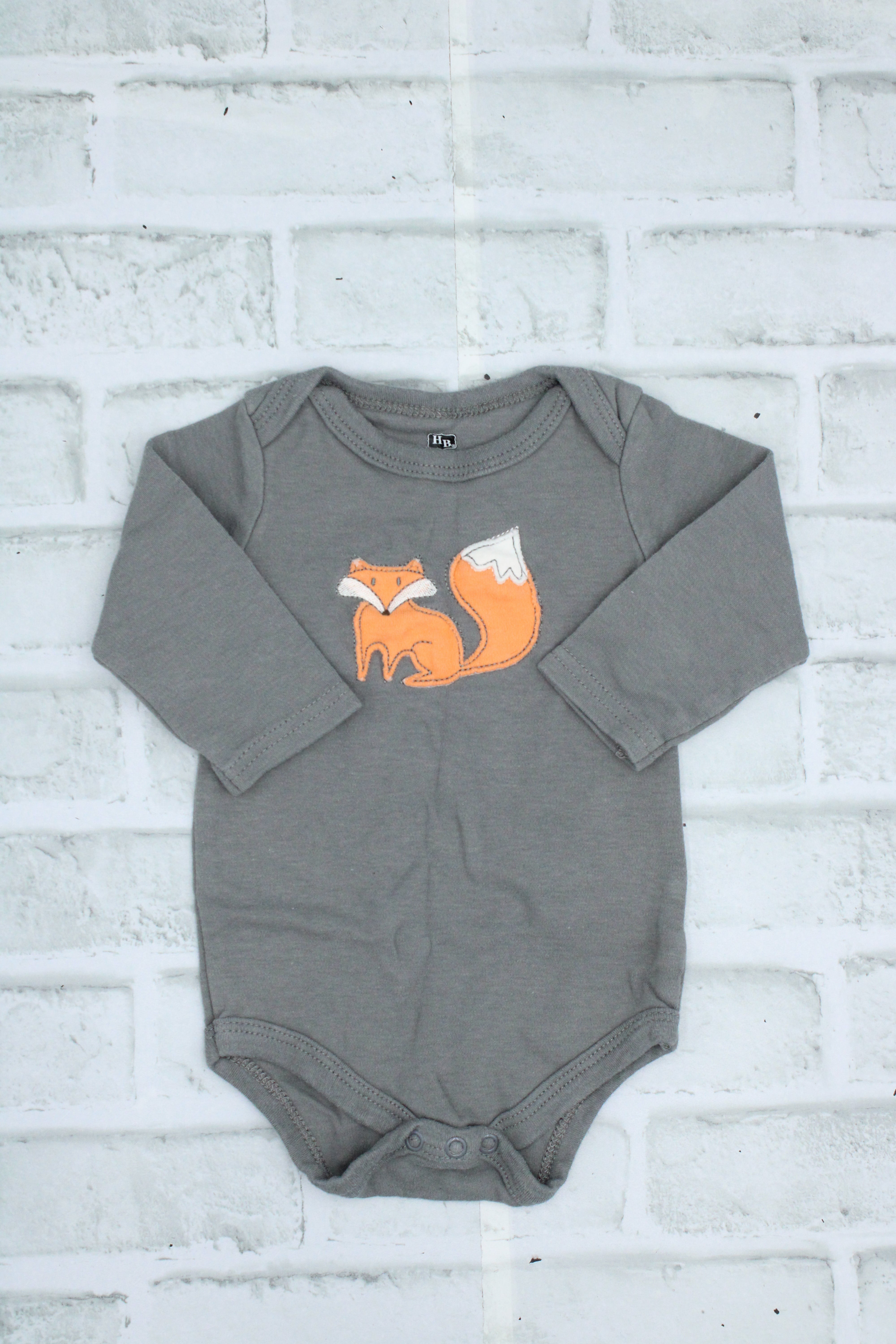 HB, Grey Fox Diaper Shirt, 3-6 Months