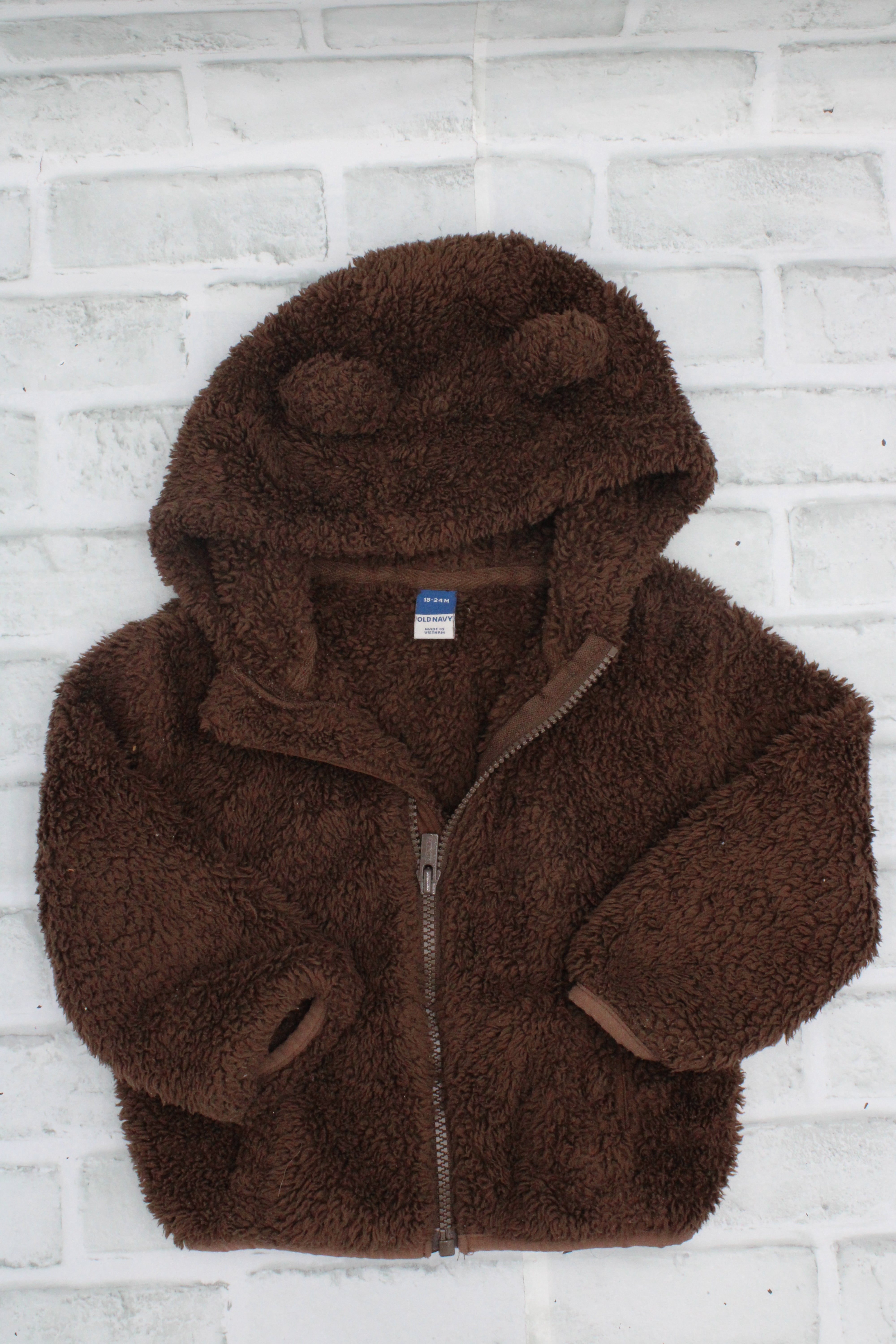 Old Navy, Brown Fuzzy Zip Up, 18-24 Months