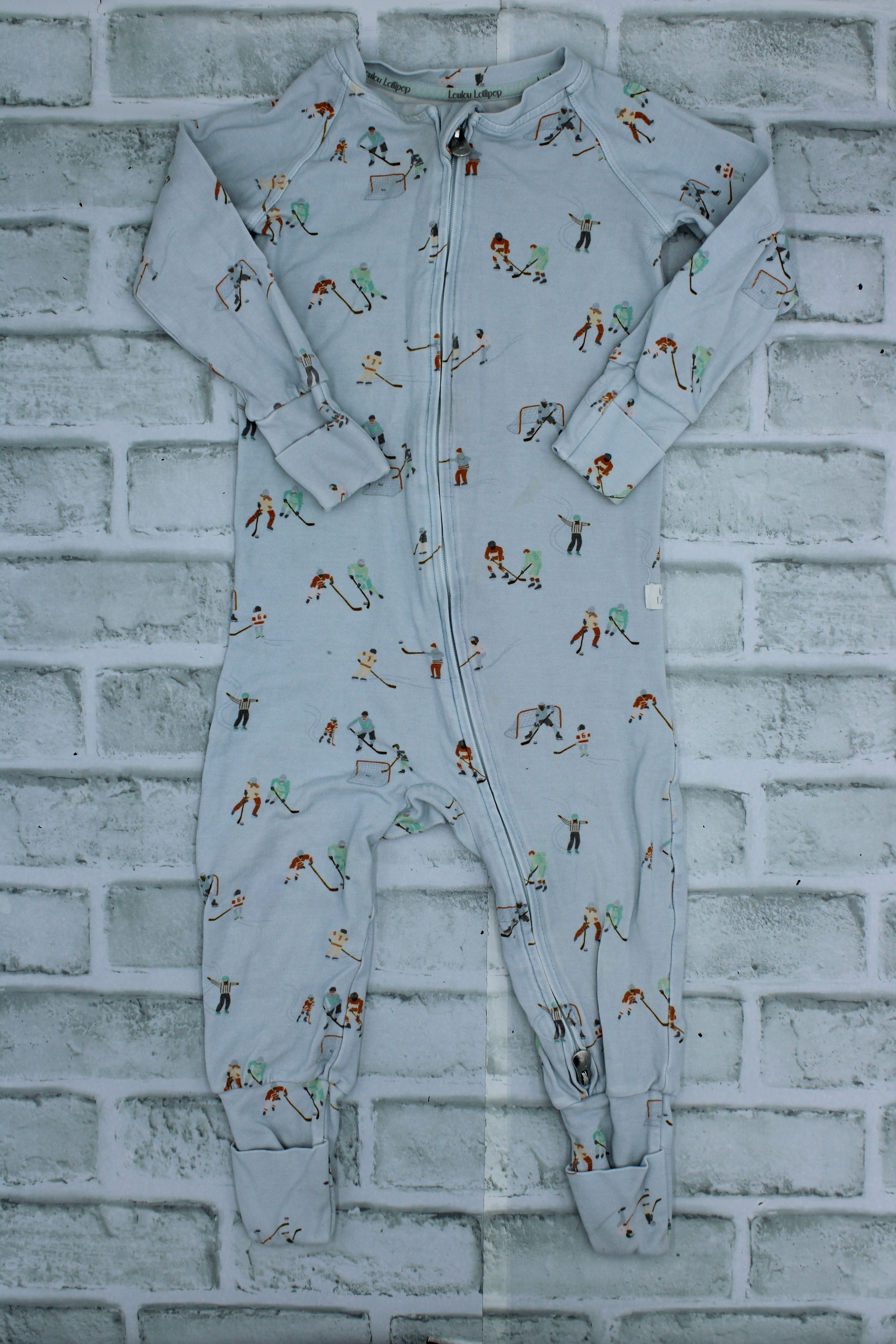 Loulou Lollipop, Hockey Sleeper with Fold Over Feet and Hands, small stain on front, 18-24 Months