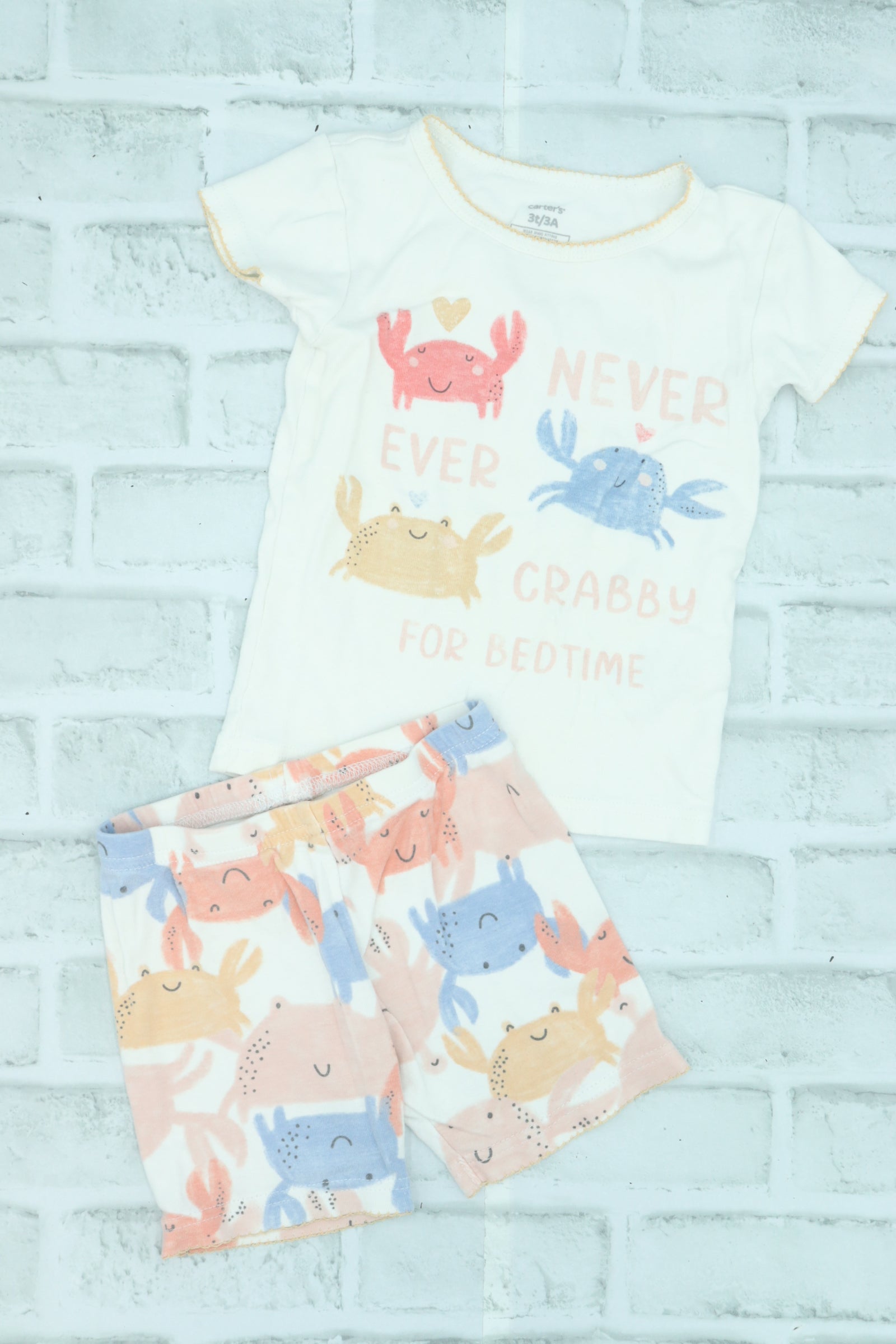 Carter's, "Never Ever Crabby For Bedtime" Shorts PJ Set, GUC, 3T