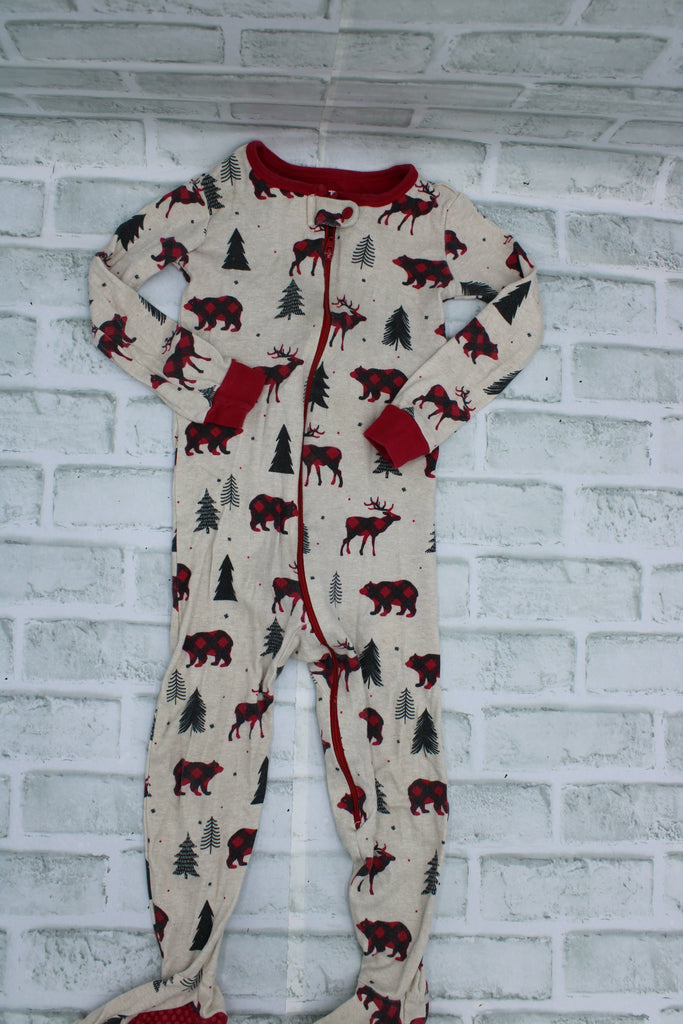 PJ Place, Deer Red Plaid Sleeper, light wear, 2T