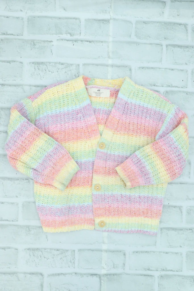 H&M, Rainbow Knit Button Up Sweater, Size 2-4