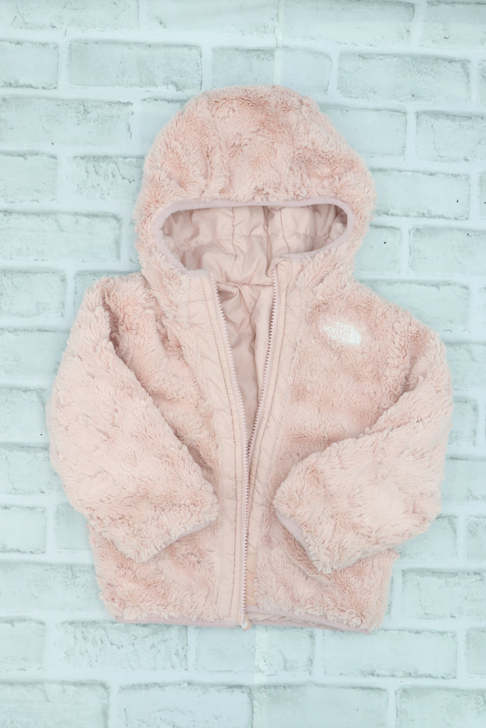 The North Face, Reversible Puffer and Fuzzy Jacket, various small stains/light stains, 2T