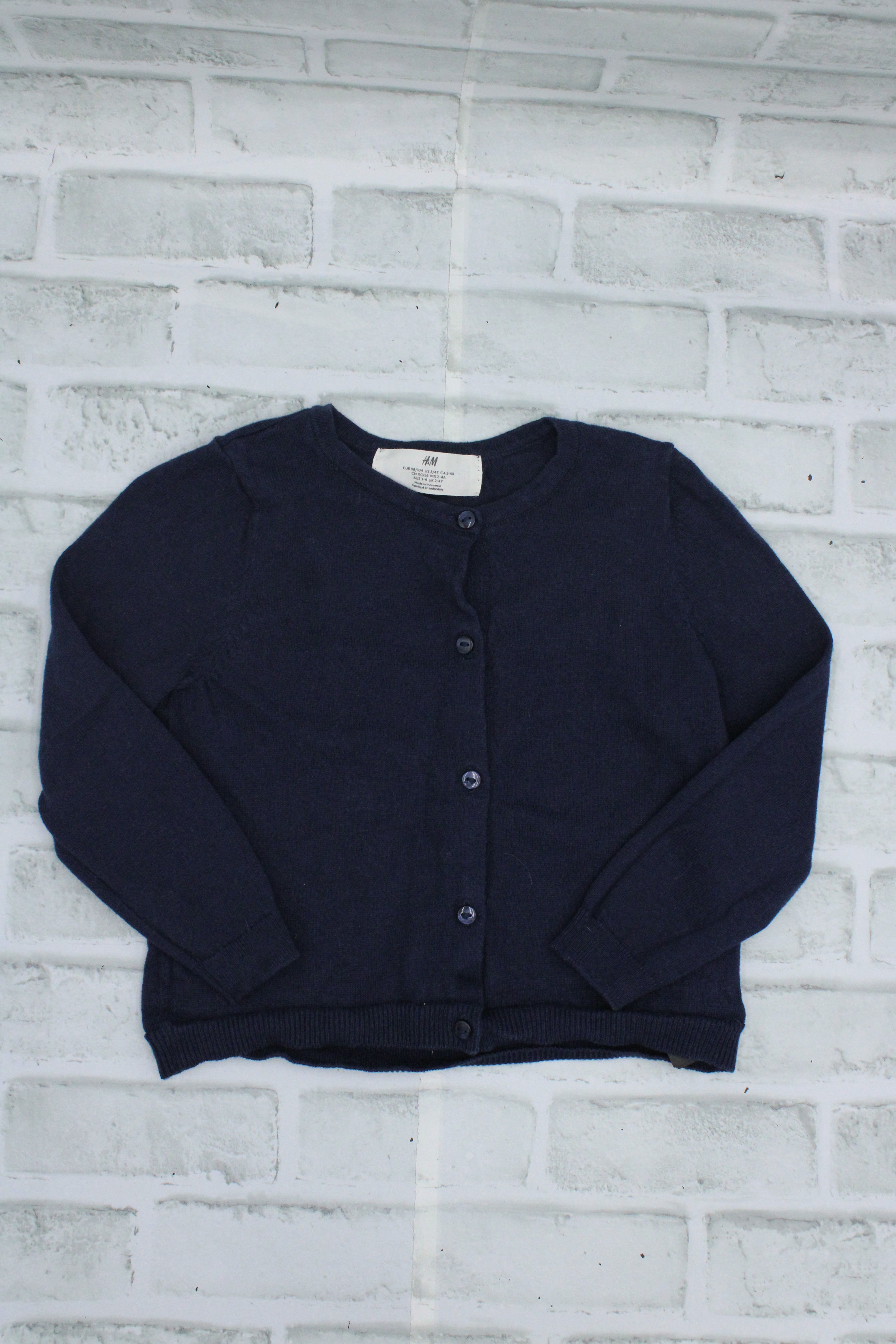 H&M, Blue Button Up Cardigan, 2-4T is backordered and will ship as soon as it is back in stock.