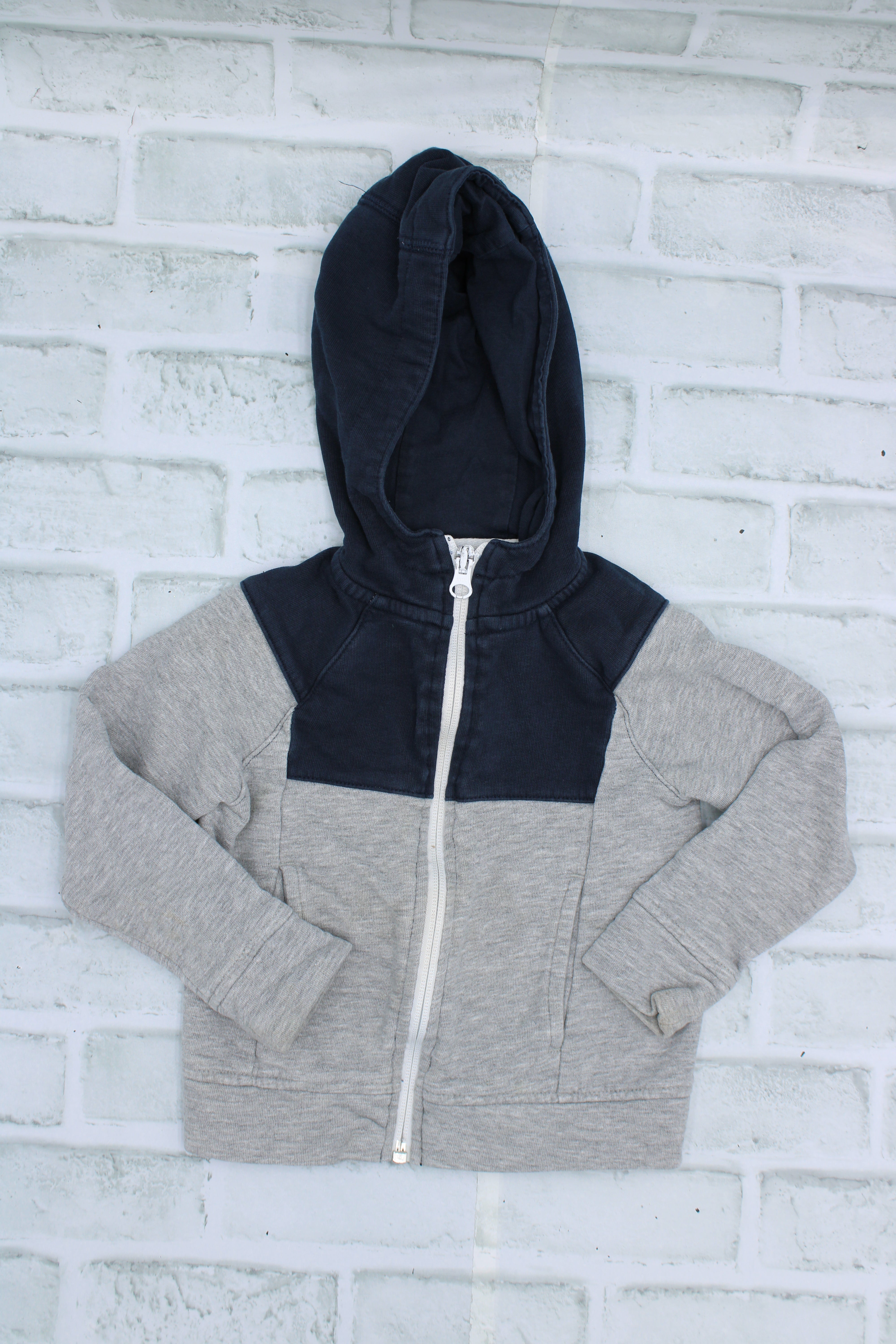 Joe Fresh Activ, Grey and Blue Hoodie, some wear, Size 2 is backordered and will ship as soon as it is back in stock.