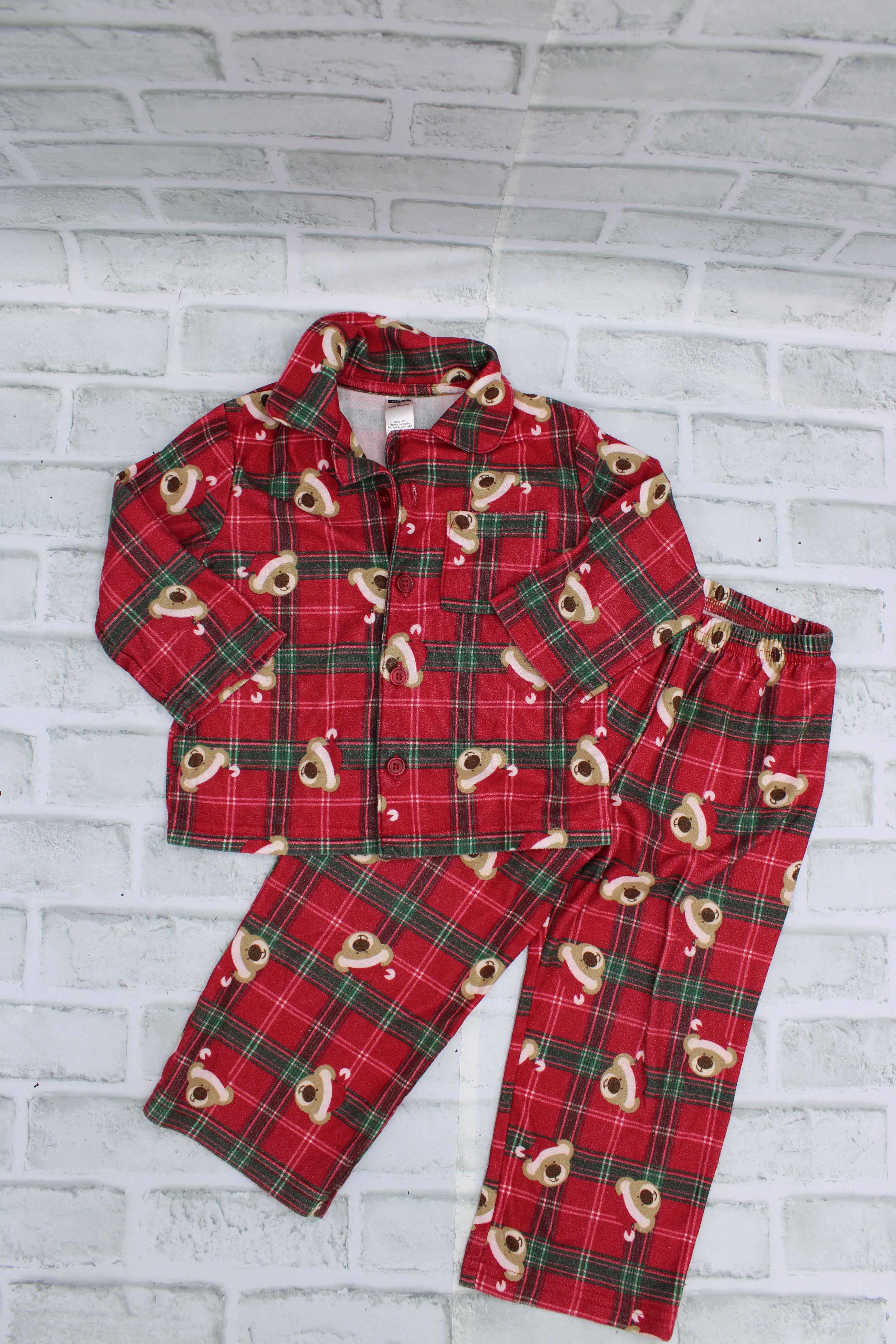 George, Red Plaid with bears PJ Set light piling, Size 2