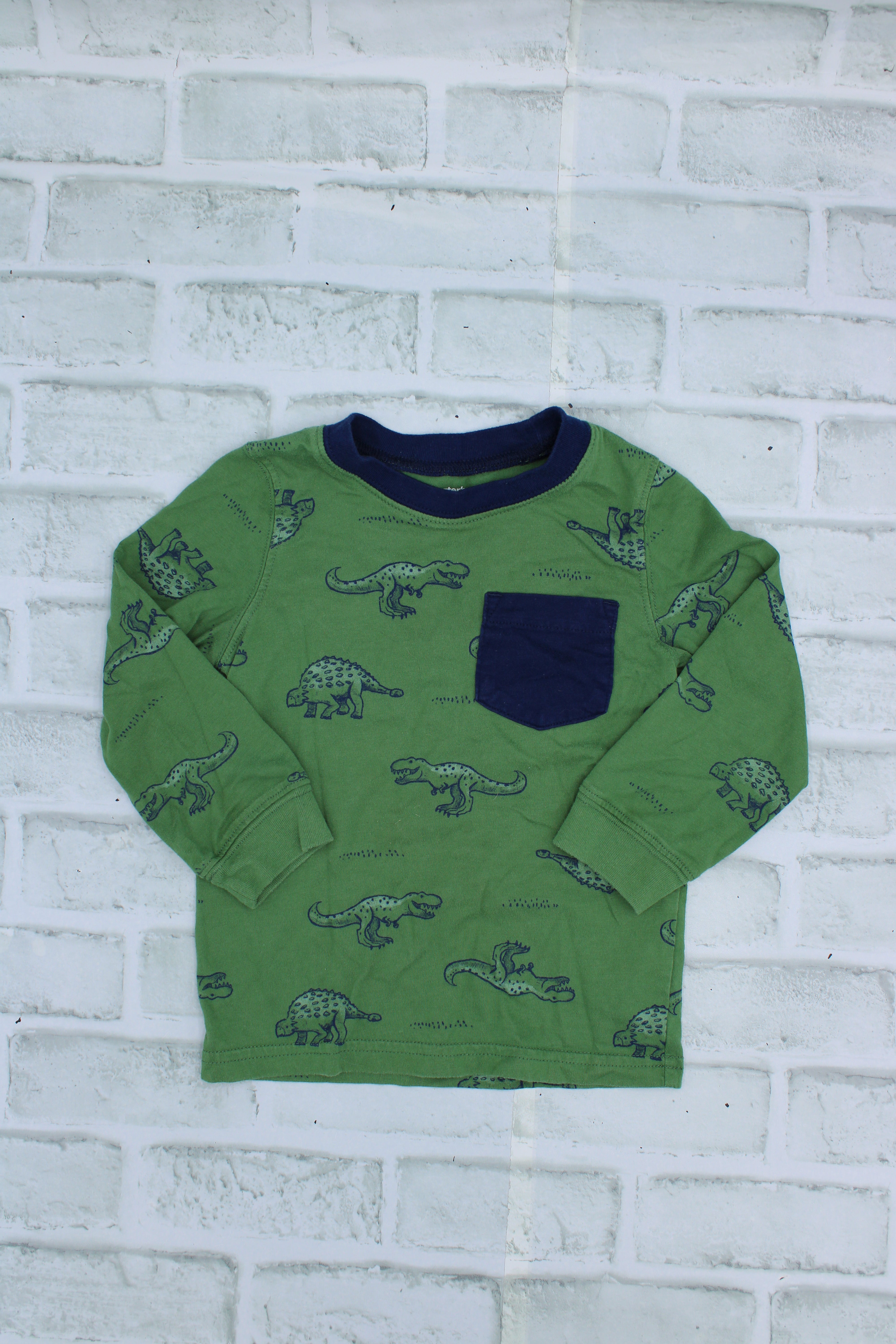 Carters, Green Dino Shirt with Pocket, Light wear, 2T