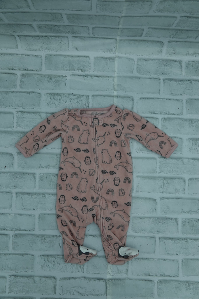 Carters, Pink Fleece Penguin sleeper, 0-3 Months