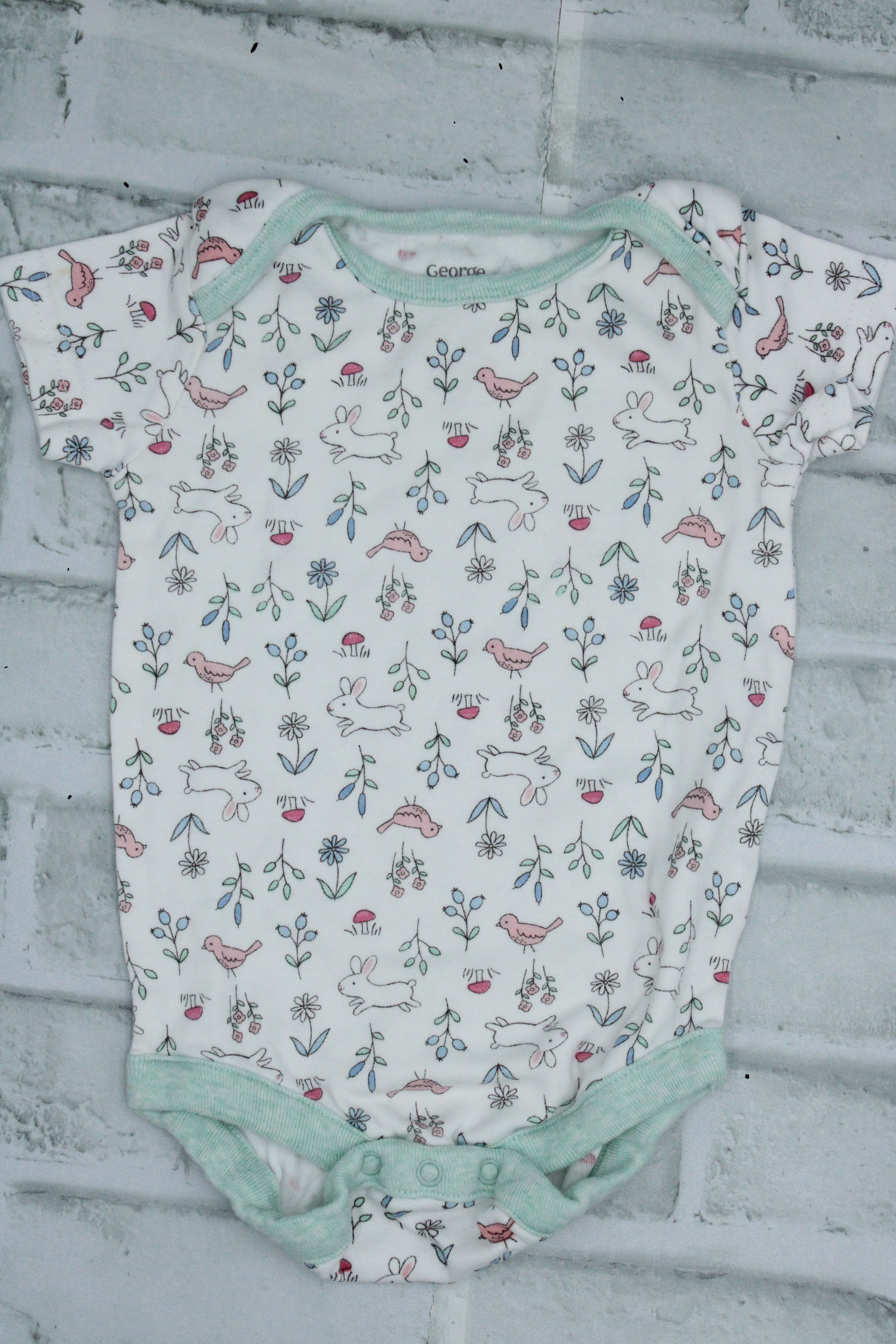 George Baby, Green Bunny Diaper Shirt, 0-3 Months