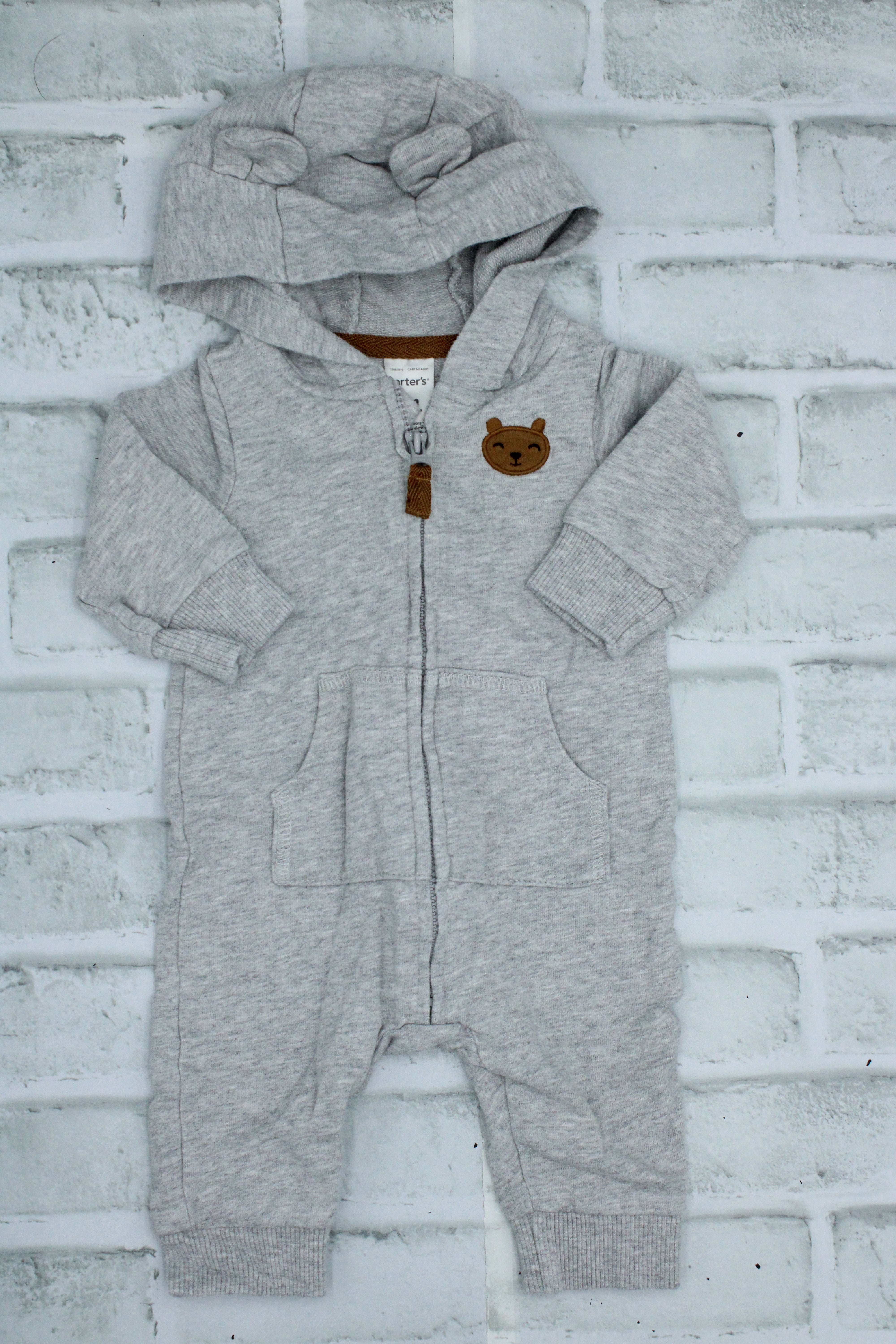 Carters, Grey Bear Hooded Onesie, 3 Months