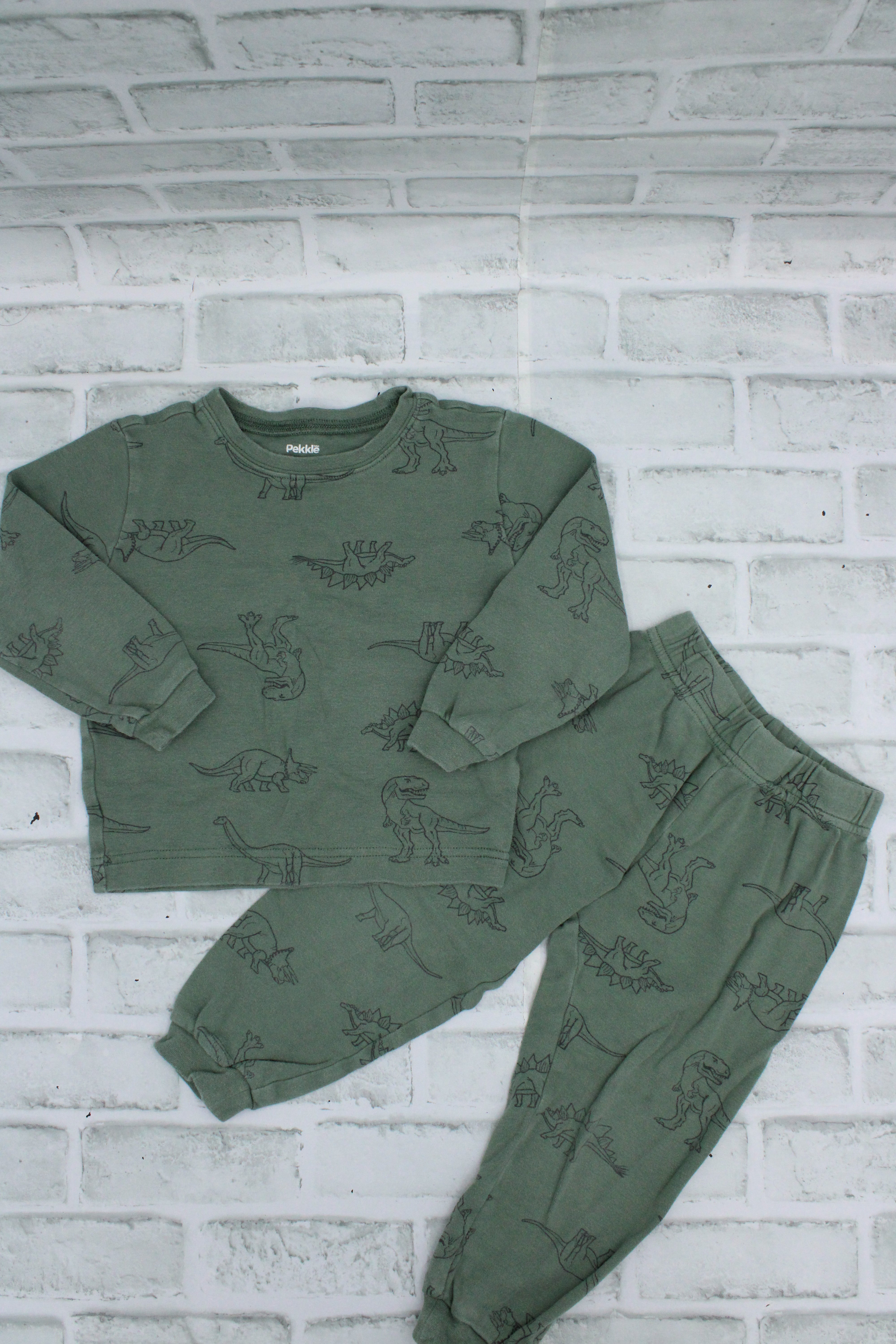 Pekkle, Green Dinosaur PJ Set, Size 2/3