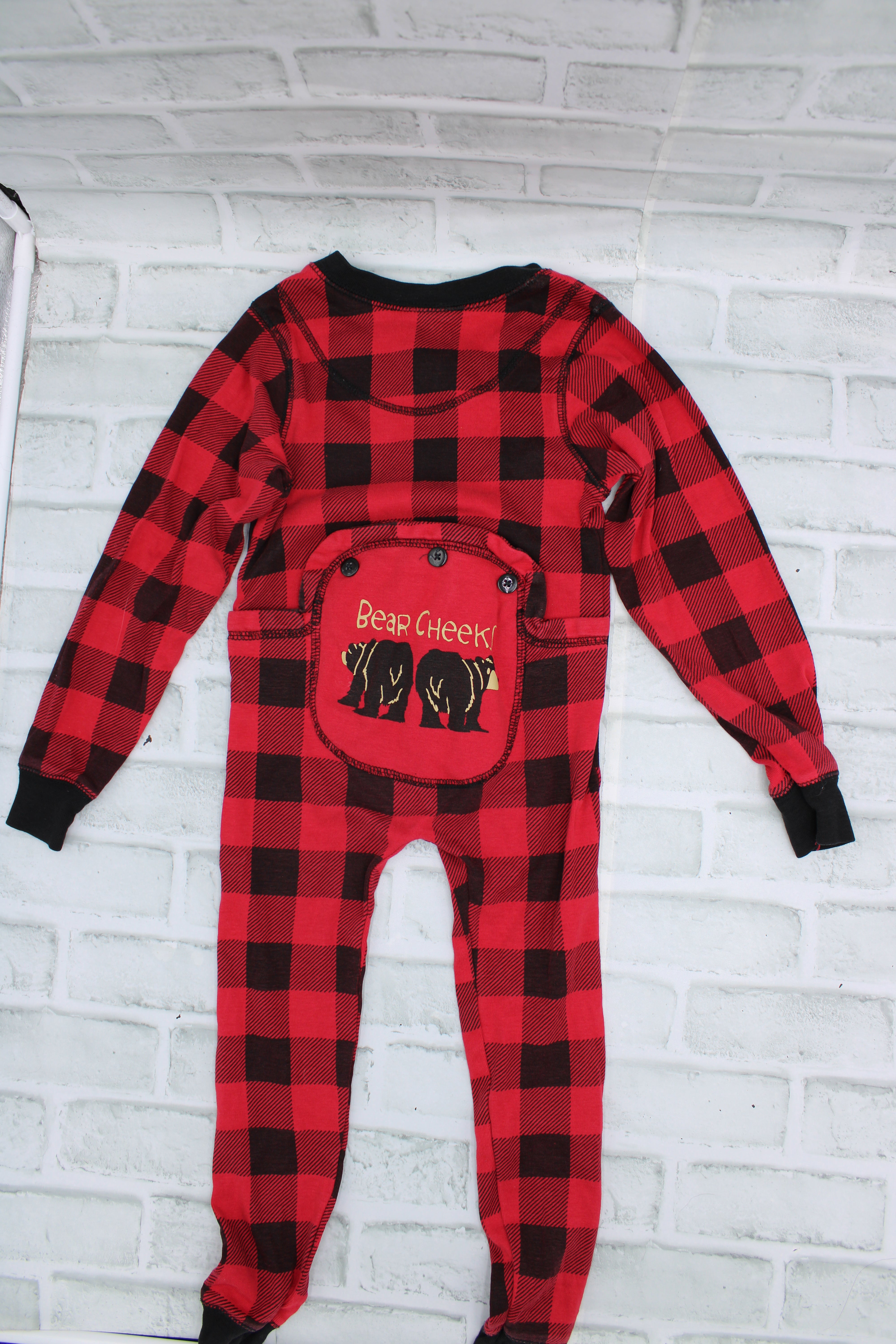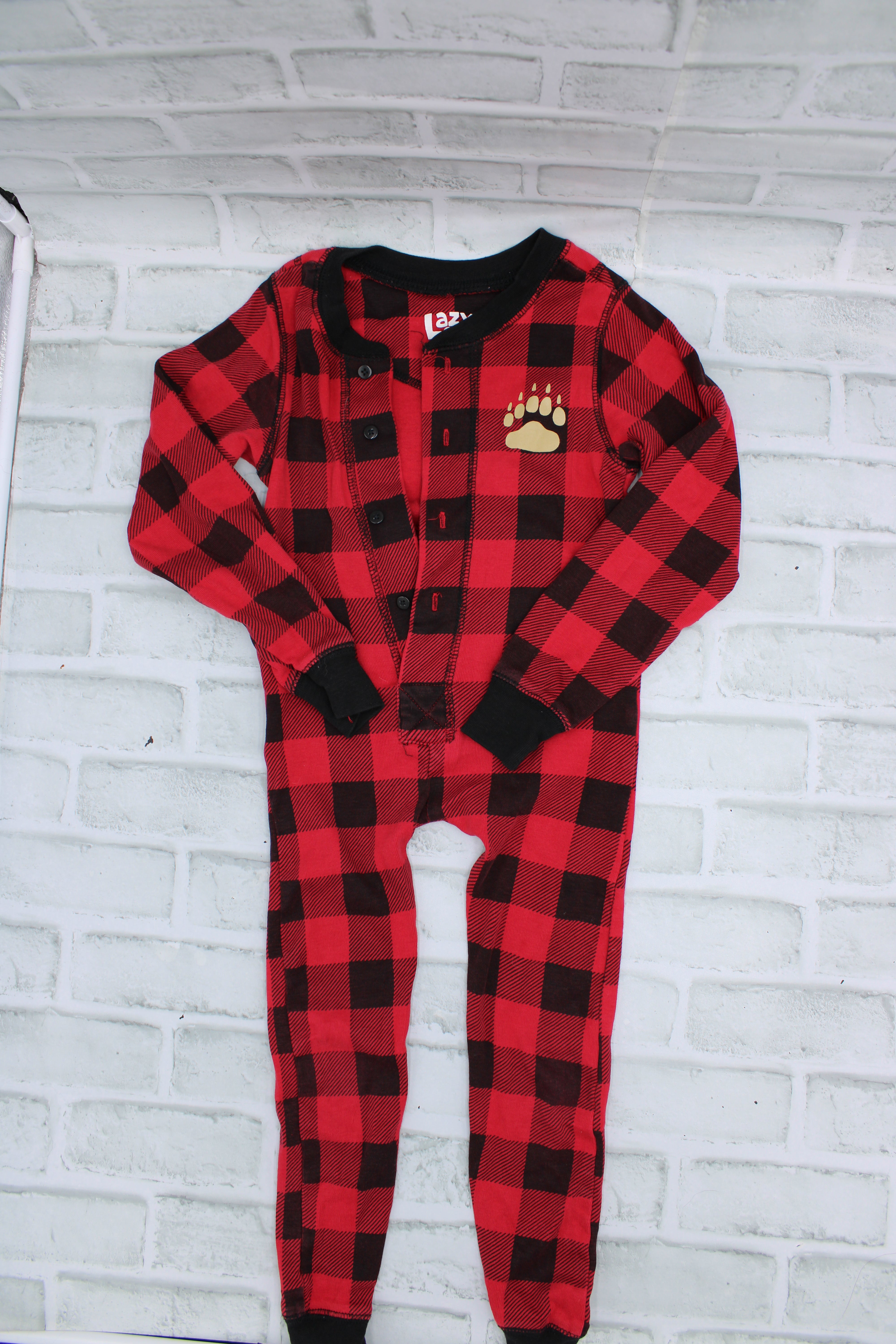 Lazy One, Red Plaid Onesie "Bear Cheeks" Light wear, 4T