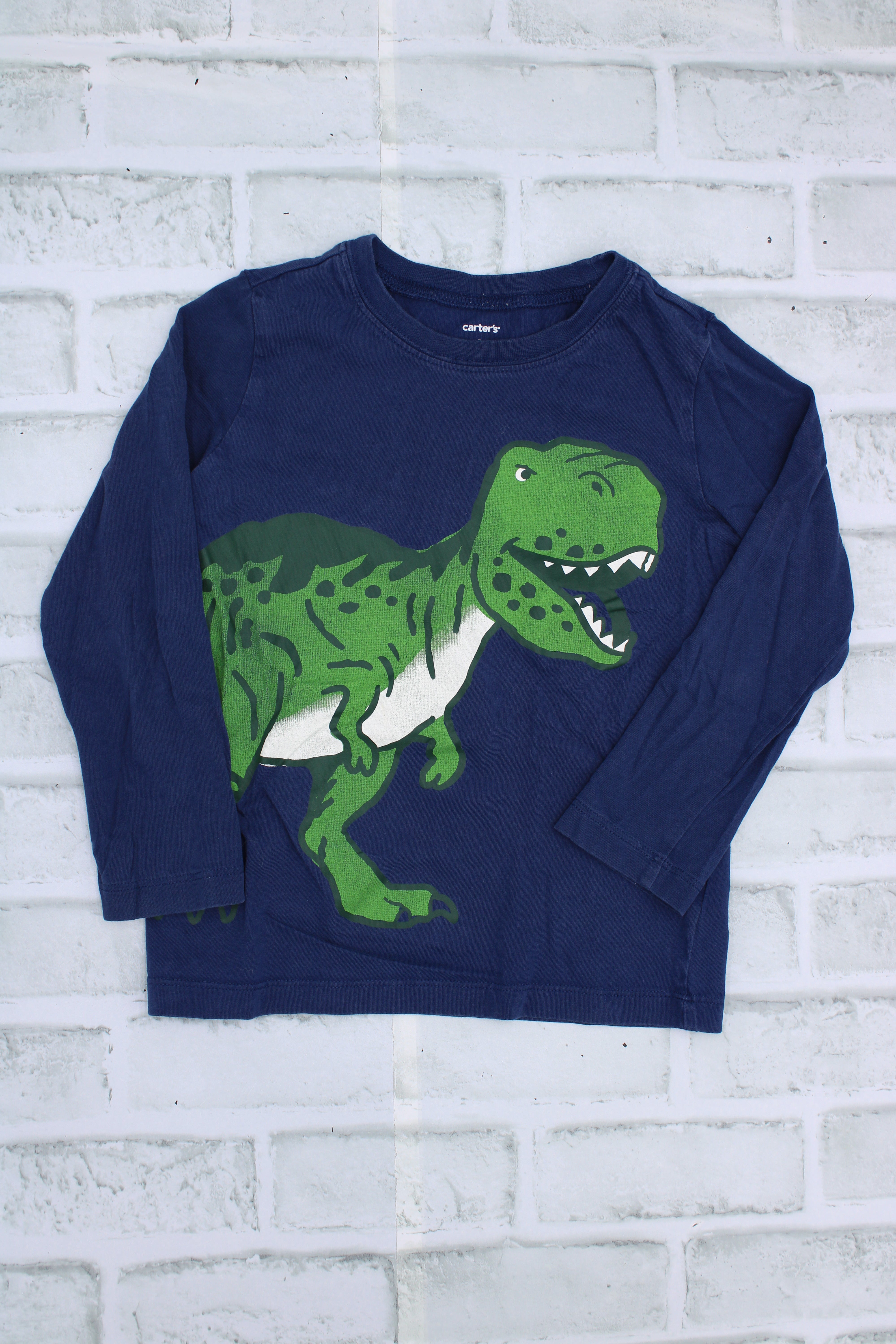 Carters, Blue Long Sleeve with Green Dino, Excellent Condition, 4T