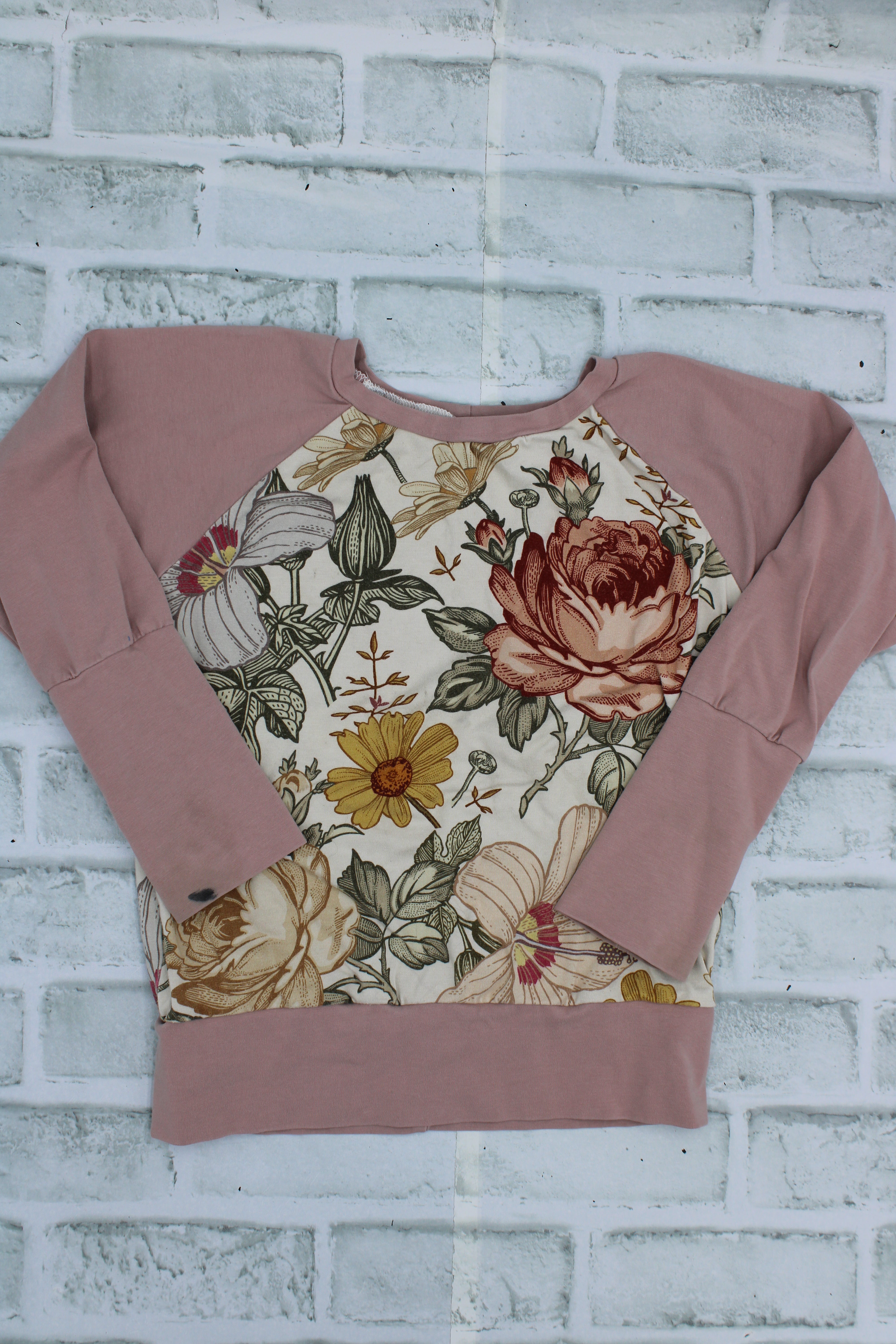Gro By Zo, Pink Floral Long Sleeve, small stain on back of wrist, Approx 3-6 Years