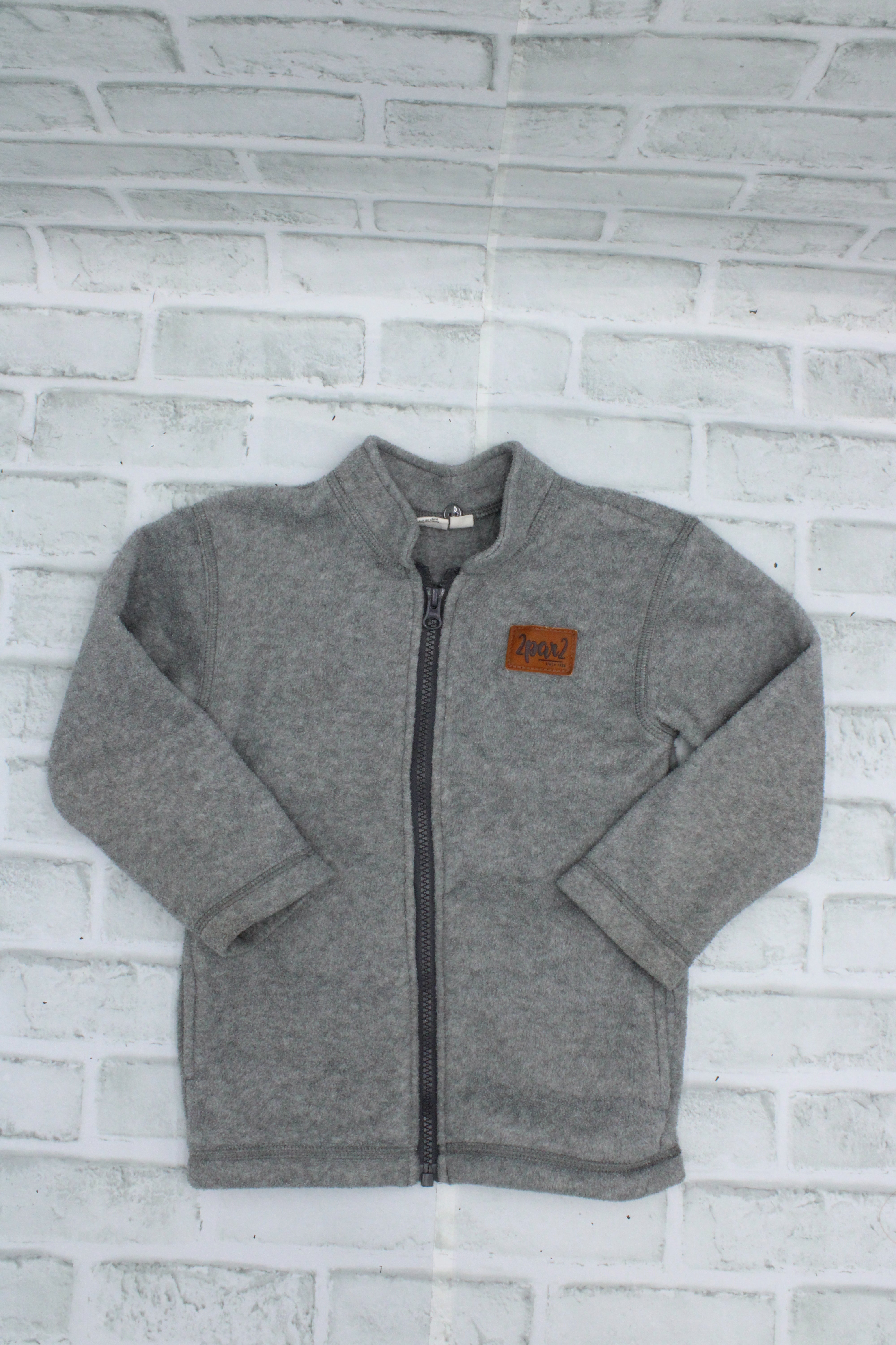 Deux Par Deux, Grey Fleece Zip Up, Size 4