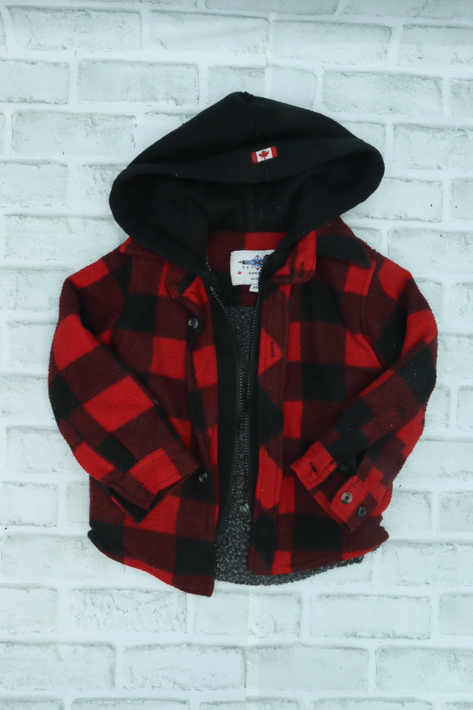 Exp Designs Canada, Fleece Plaid Zip Up with Fuzzy Lining, light wear/light pilling, 4T