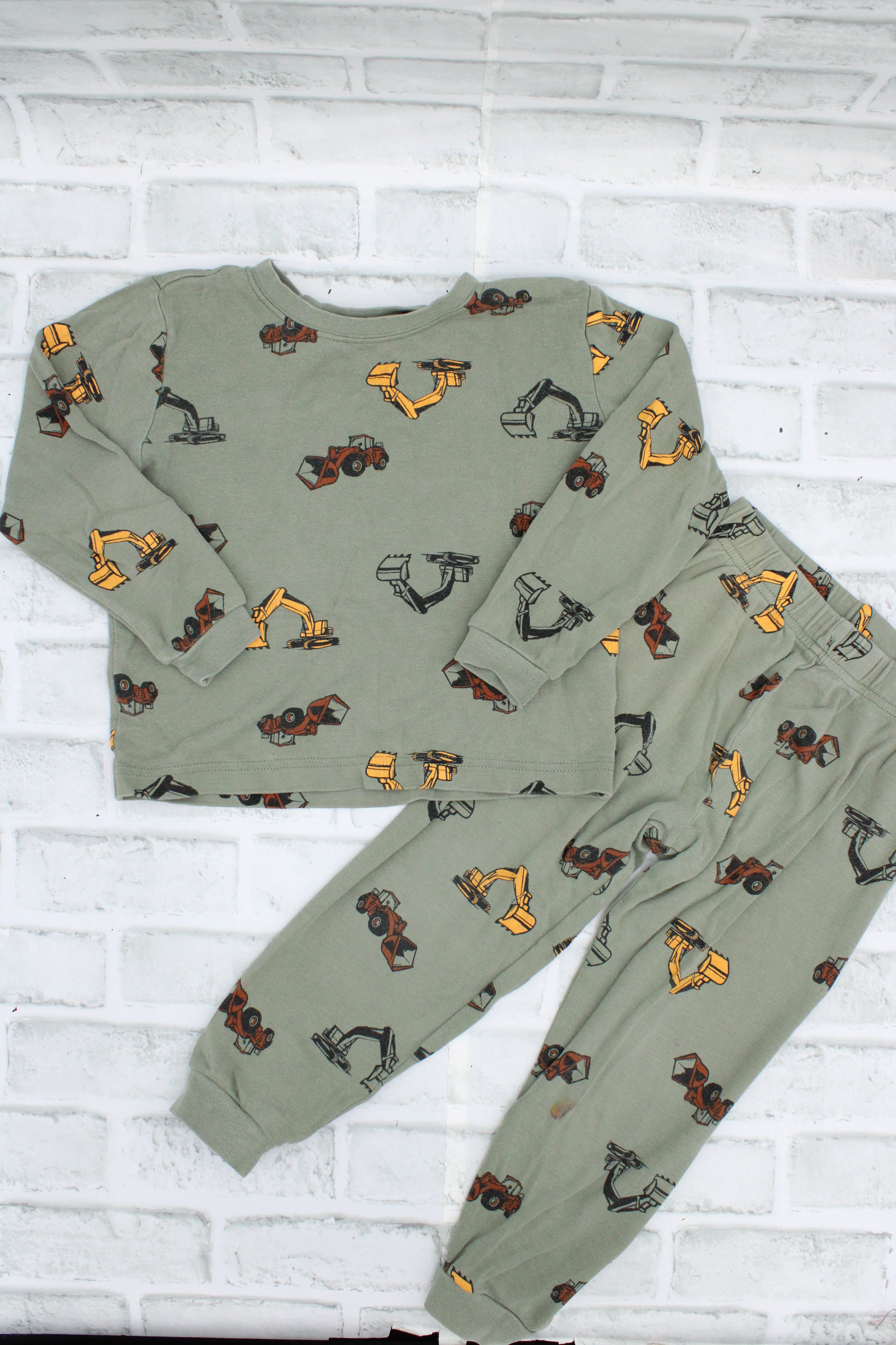 Pekkle, Construction PJ Set, small hole in shirt, and stain on pant, Size 4/5