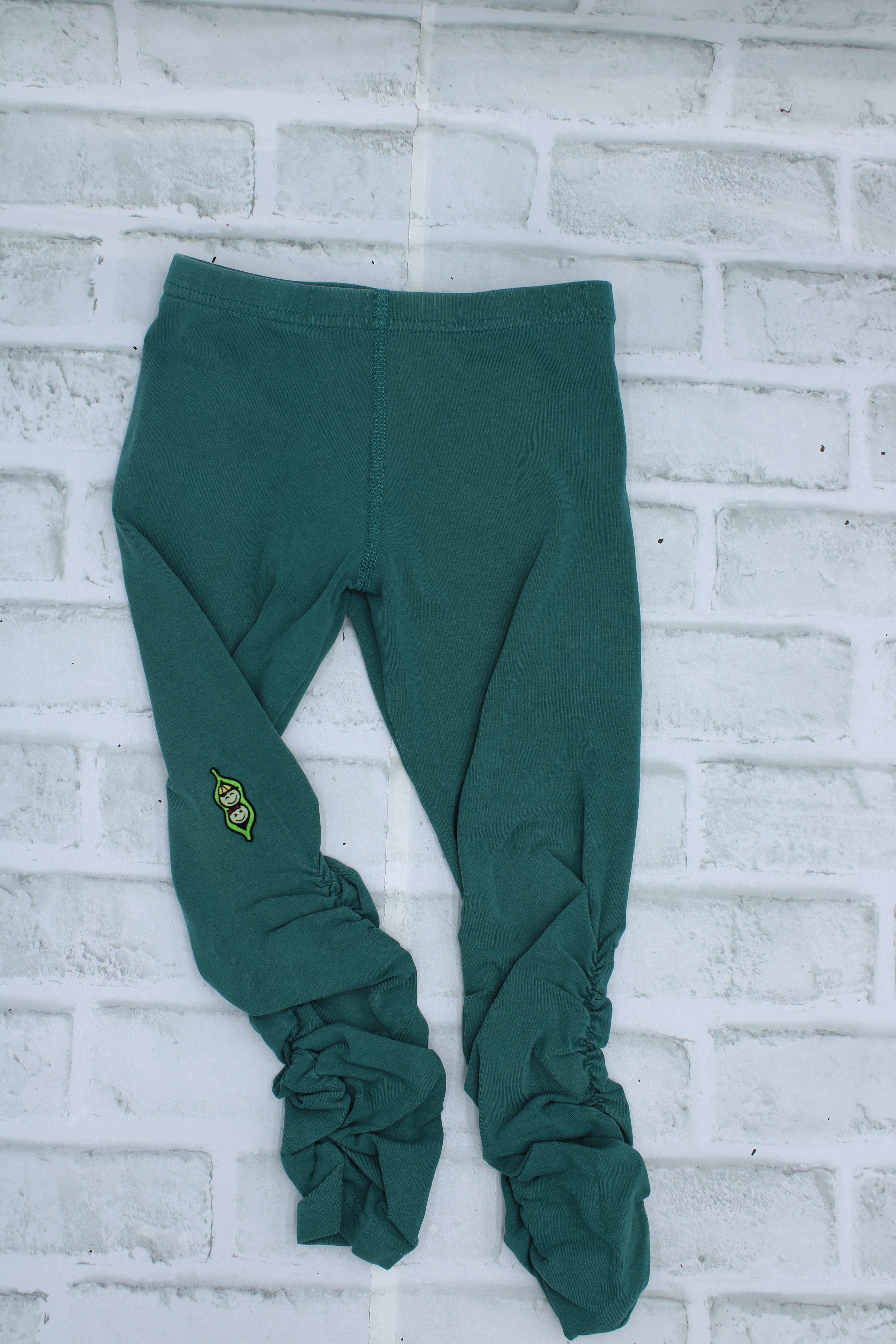 Peekaboo Beans, Green Leggings with Ruching, light wear, Size 4