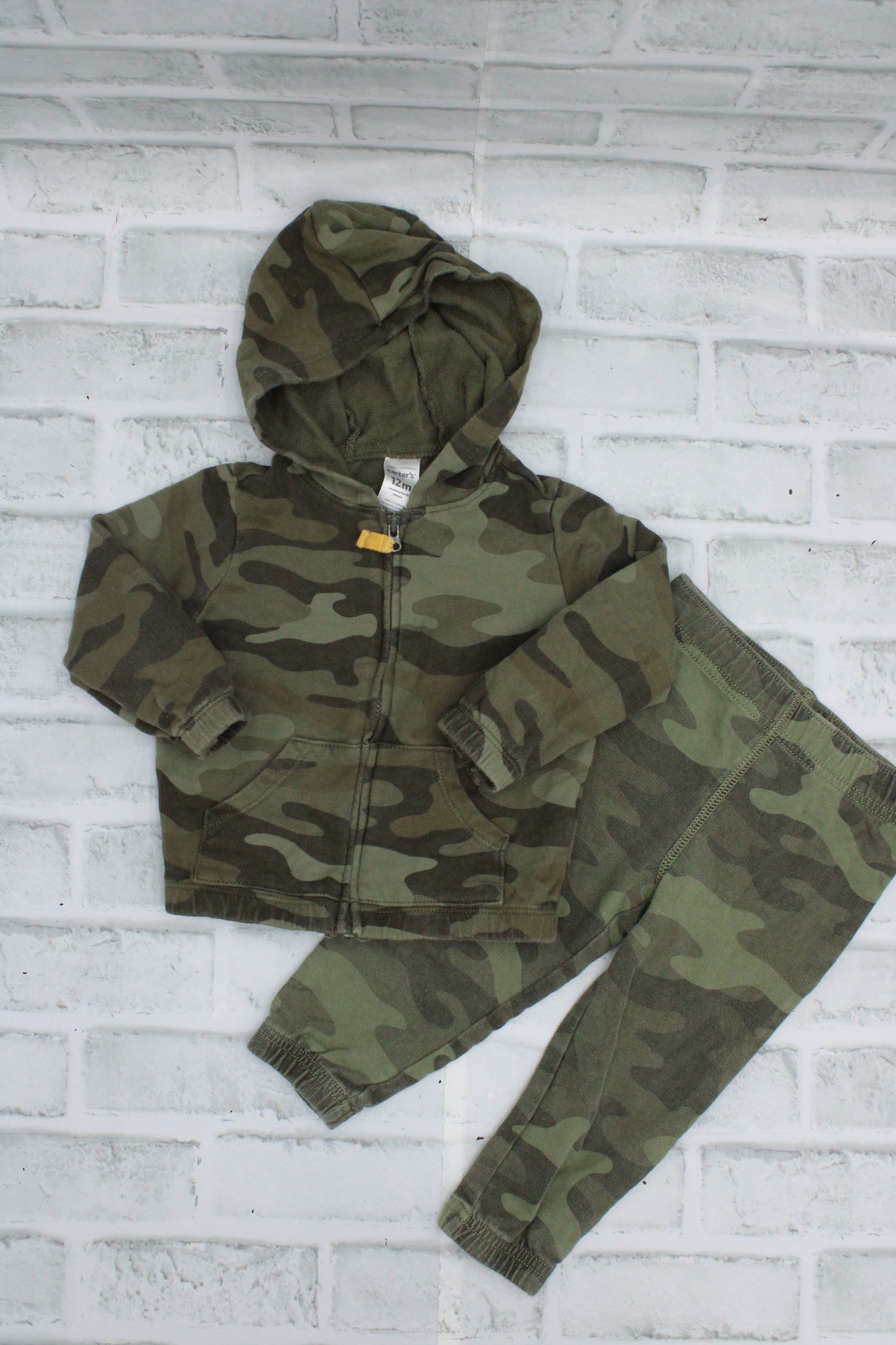 Carters, Camo Hoodie Set, light wear on Hoodie, more wear on pants, 12 Months is backordered and will ship as soon as it is back in stock.