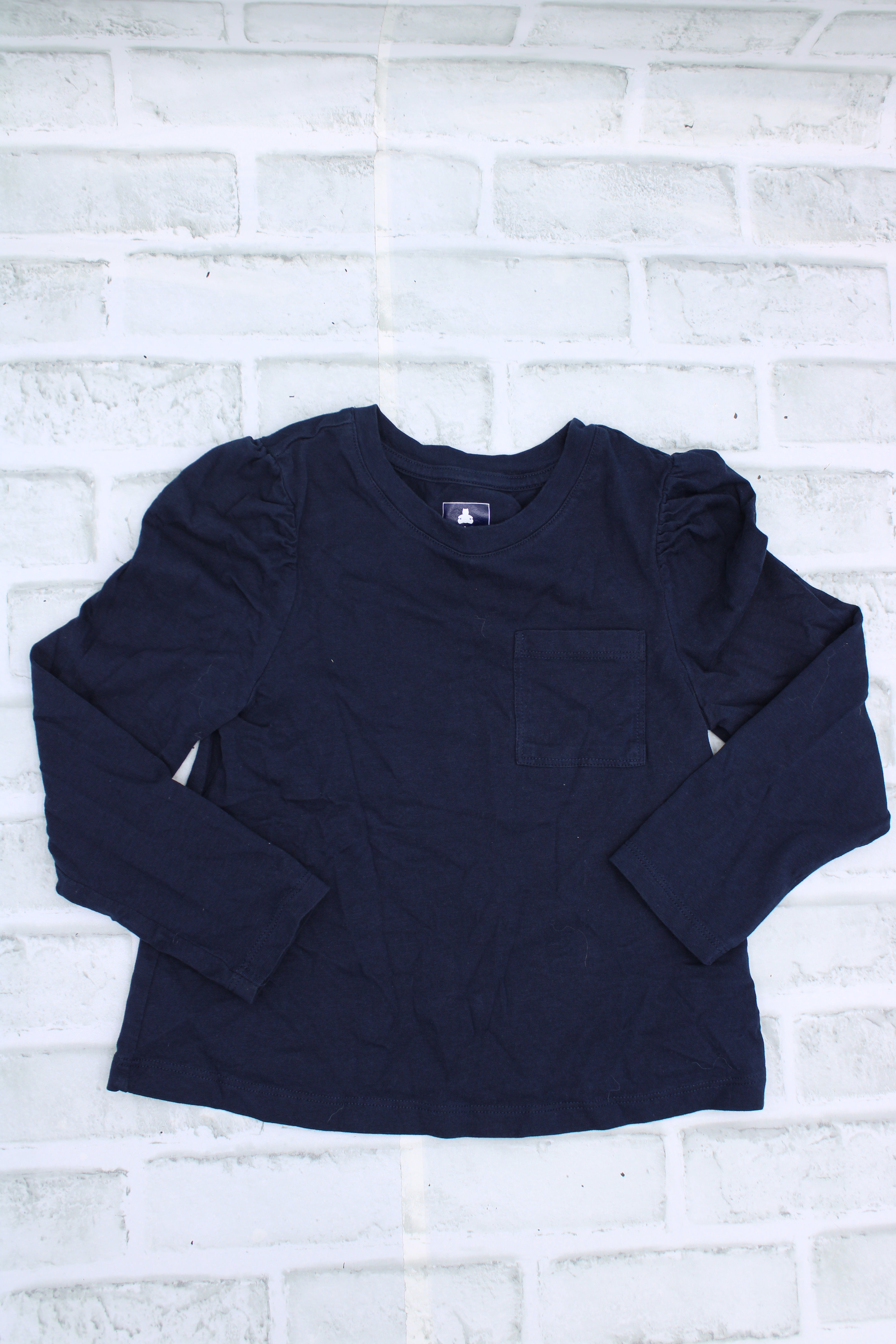 Gap, Navy Shirt with Ruffle Shoulders, Organic Cotton, Excellent Condition, Size 5 is backordered and will ship as soon as it is back in stock.