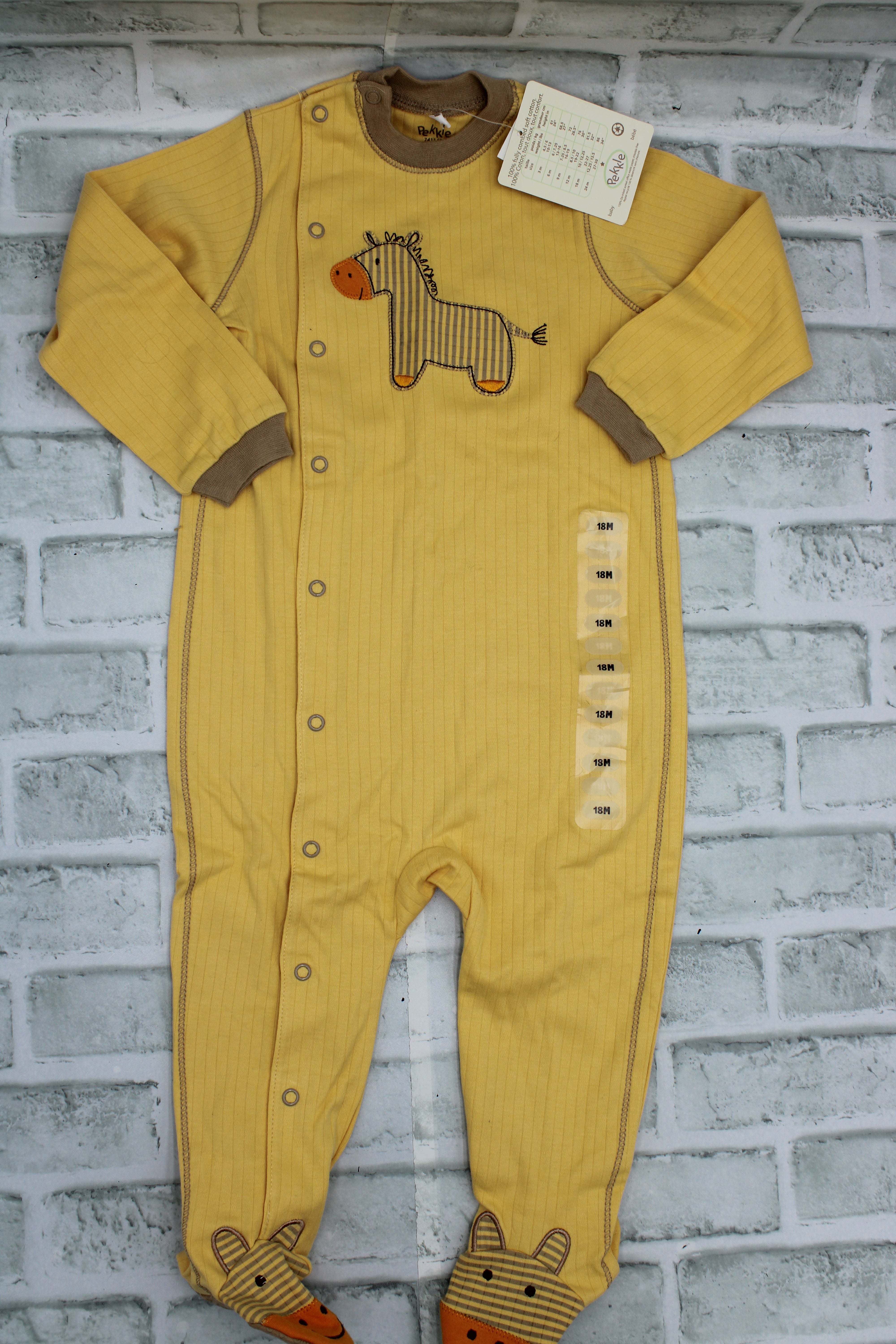 Pekkle, Yellow Zebra Sleeper with Snaps, New With Tags, 18 Months is backordered and will ship as soon as it is back in stock.