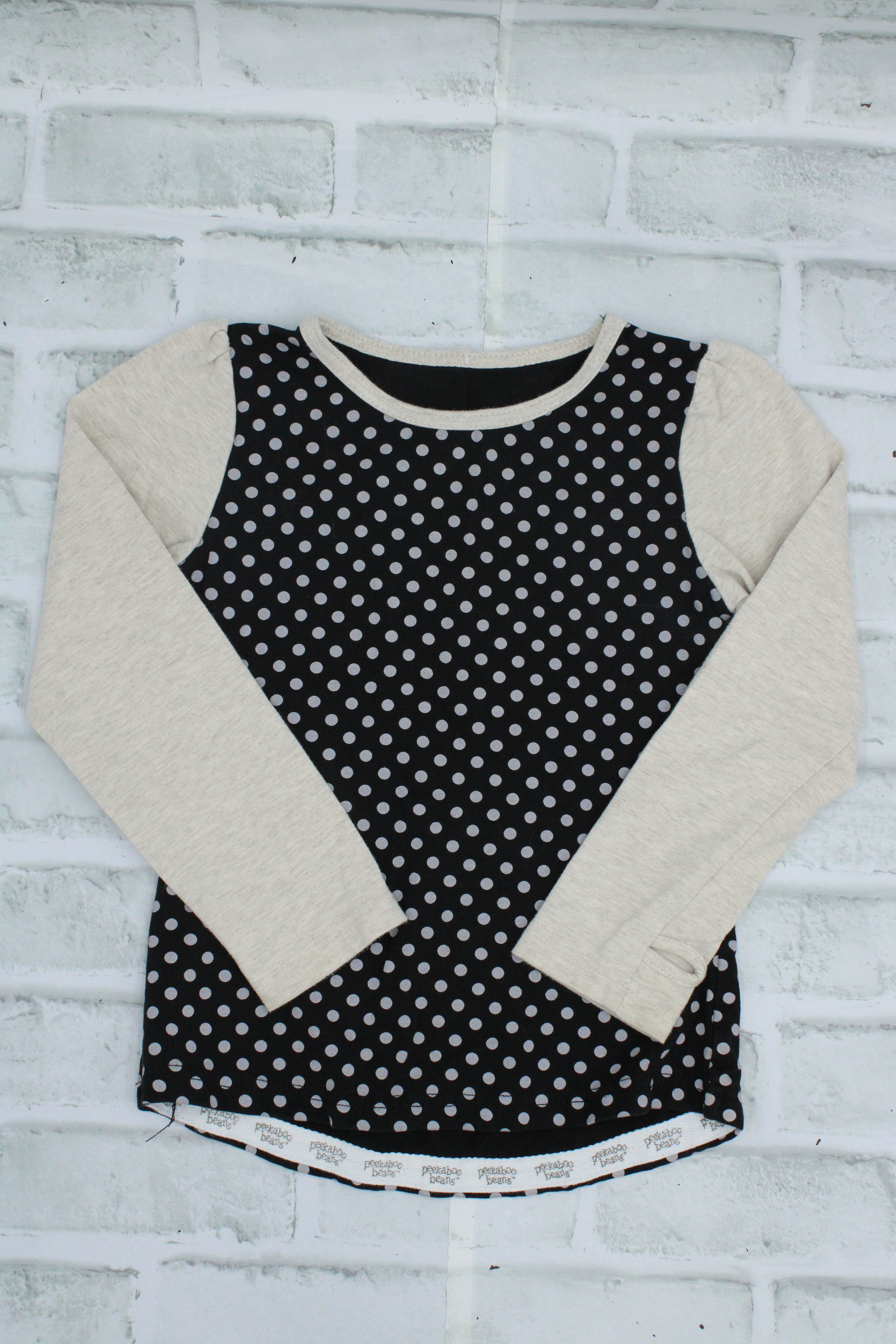 Peekaboo Beans, Black Polka Dot Long Sleeve, Approx Size 3/4 is backordered and will ship as soon as it is back in stock.