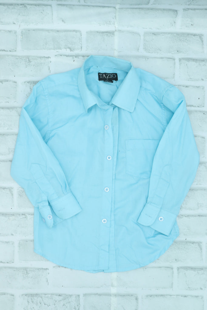 Tazio, Blue Button Up Shirt, small stain, Size 4 is backordered and will ship as soon as it is back in stock.