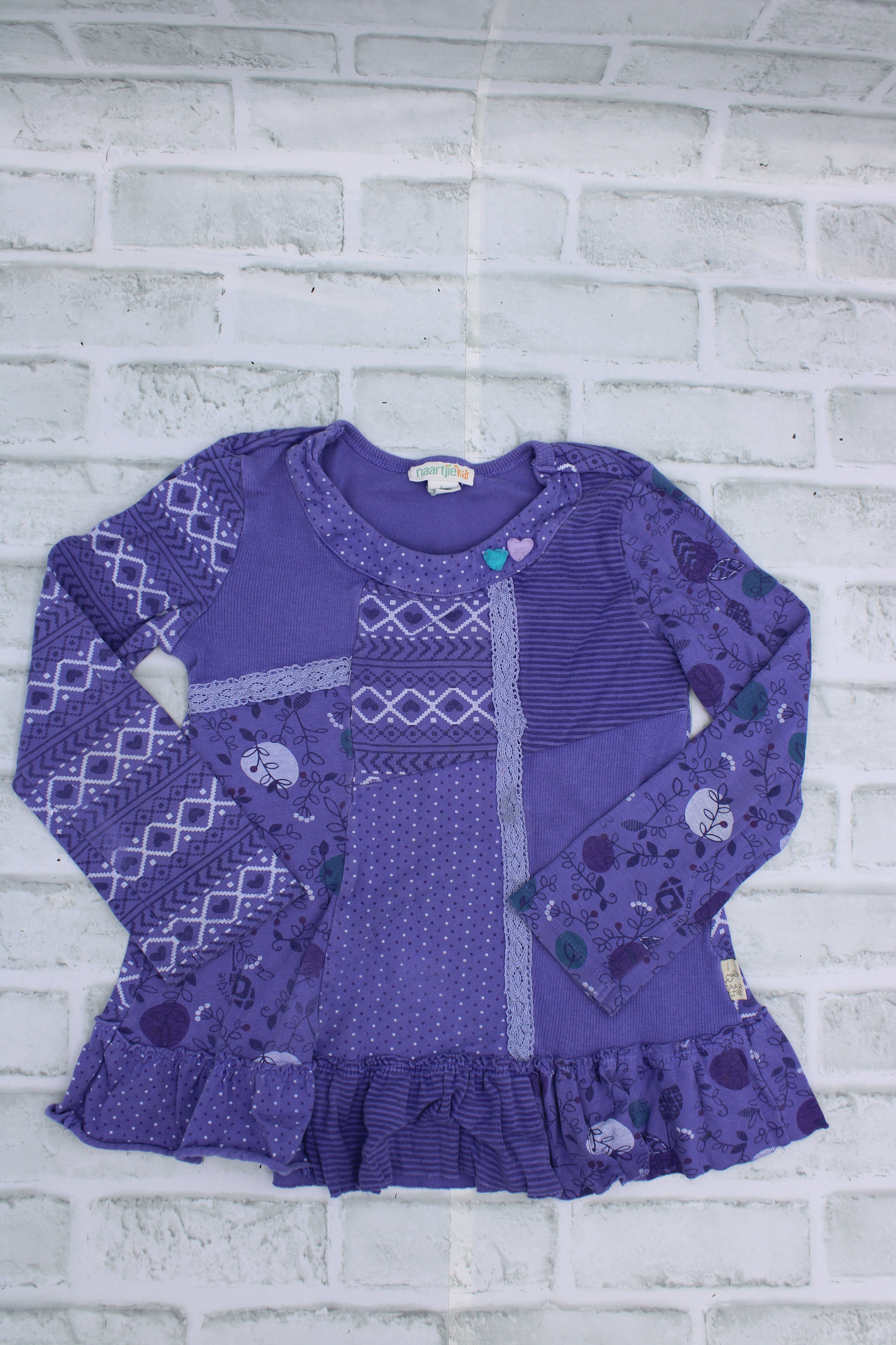Naartjie Kids, Purple patchwork design long sleeve, some wear, Size Large (6)