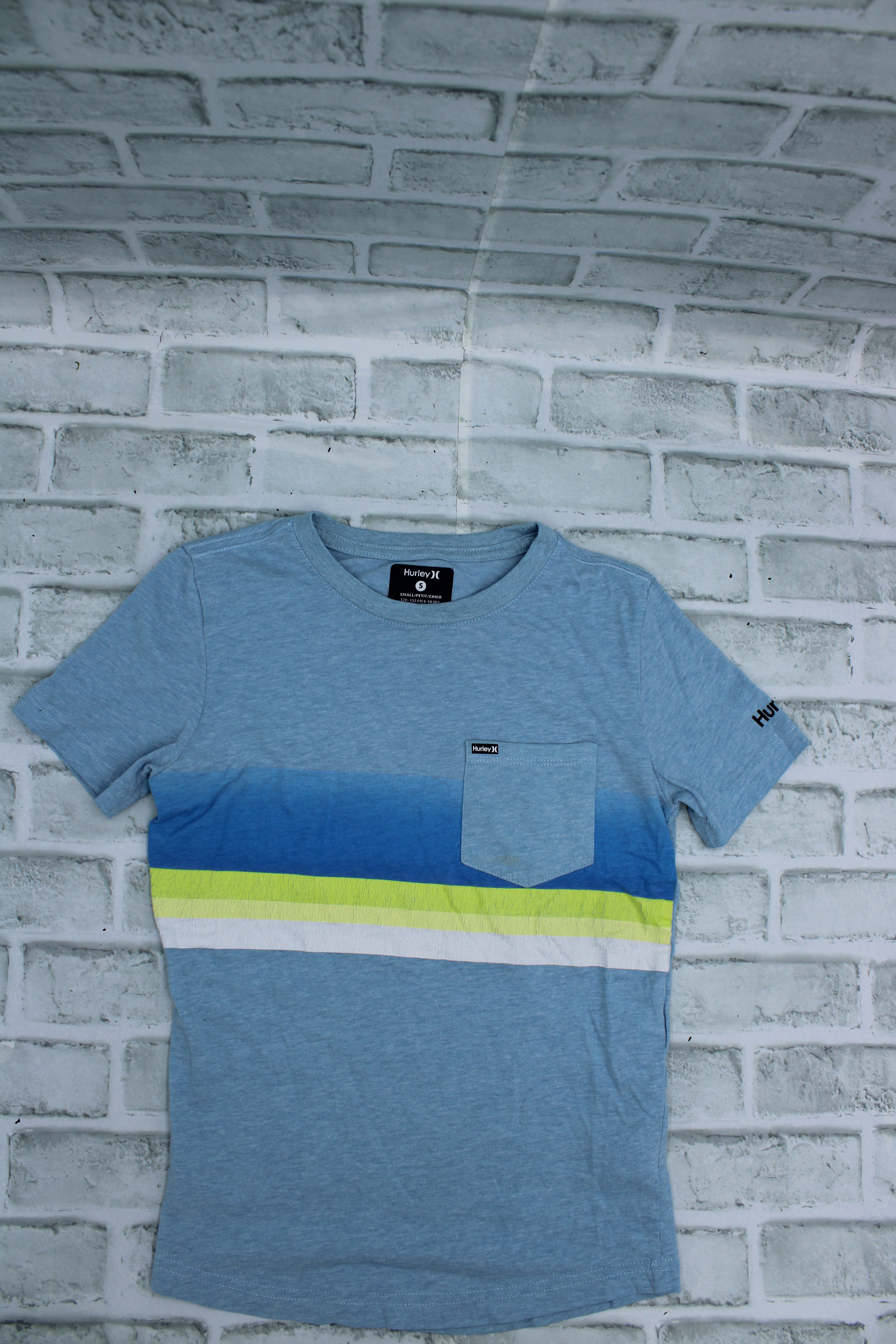 Hurley, Blue Tshirt with stripe and pocket, some wear, Size Small