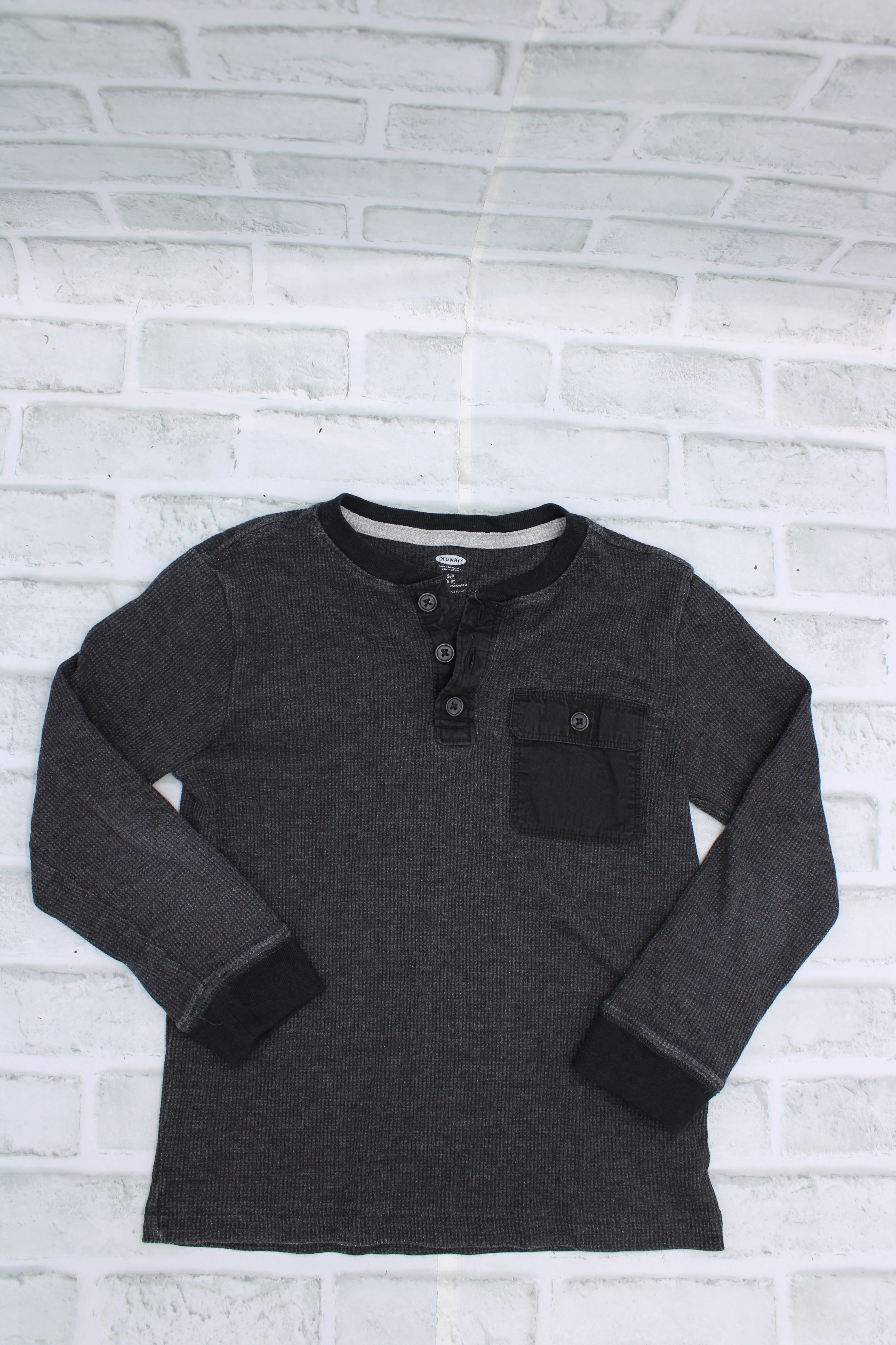 Old Navy, Grey Henley Long Sleeve, Size Small (6/7)