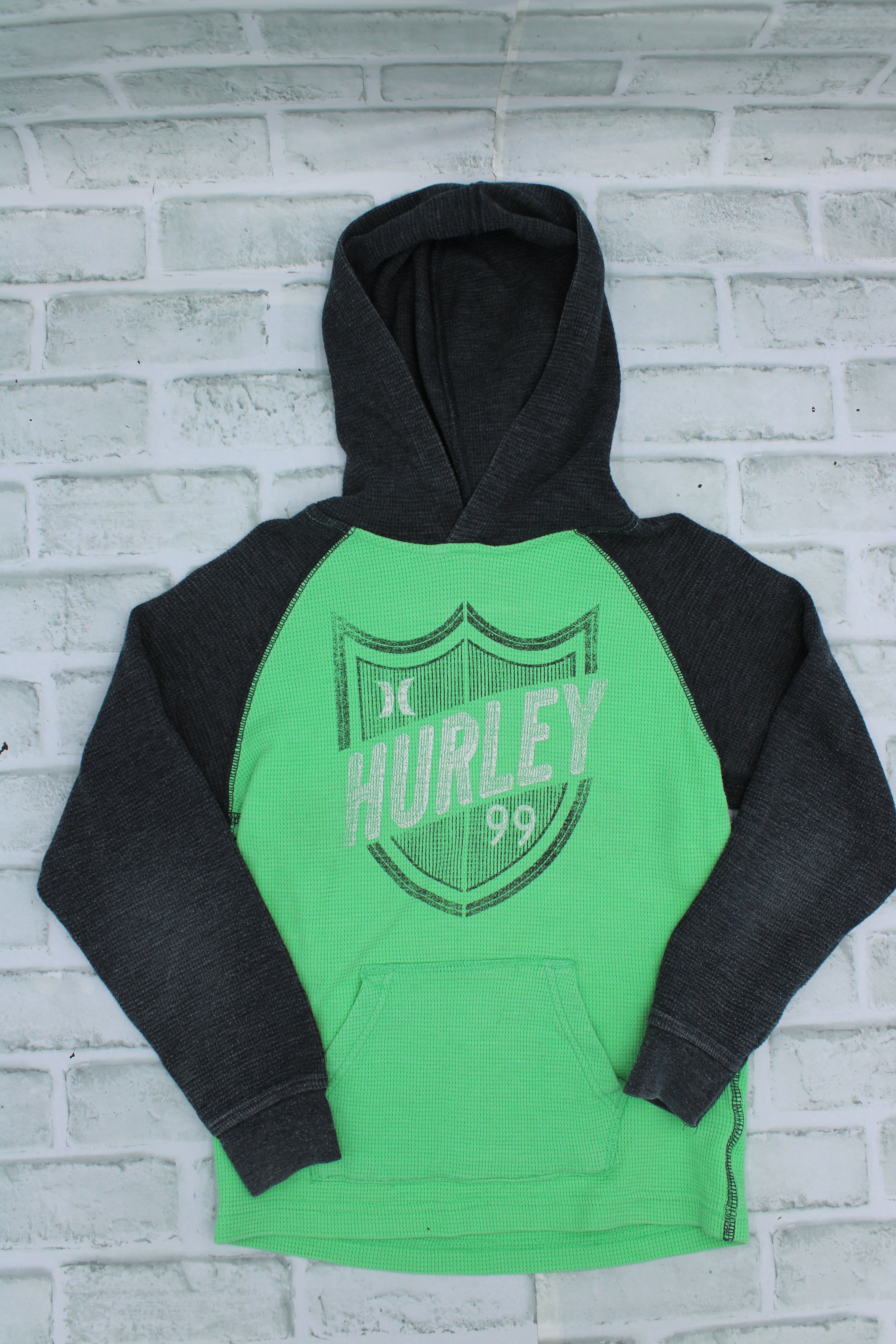 Hurley, Green Waffle Hoodie, light wear, Size Small (5/6)