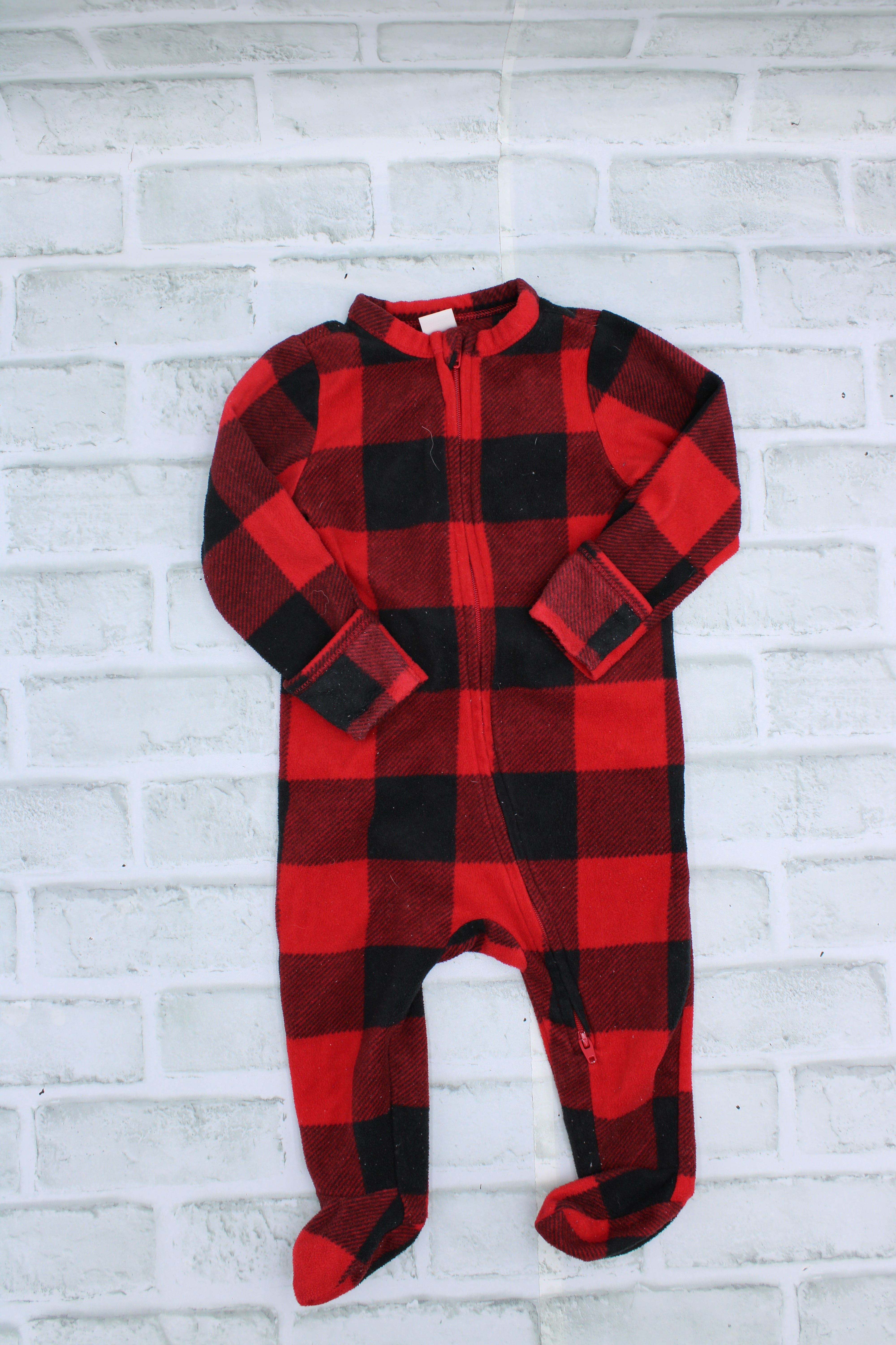 Old Navy, Fleece Red Plaid Sleeper with foldover hands, 6-9 Months