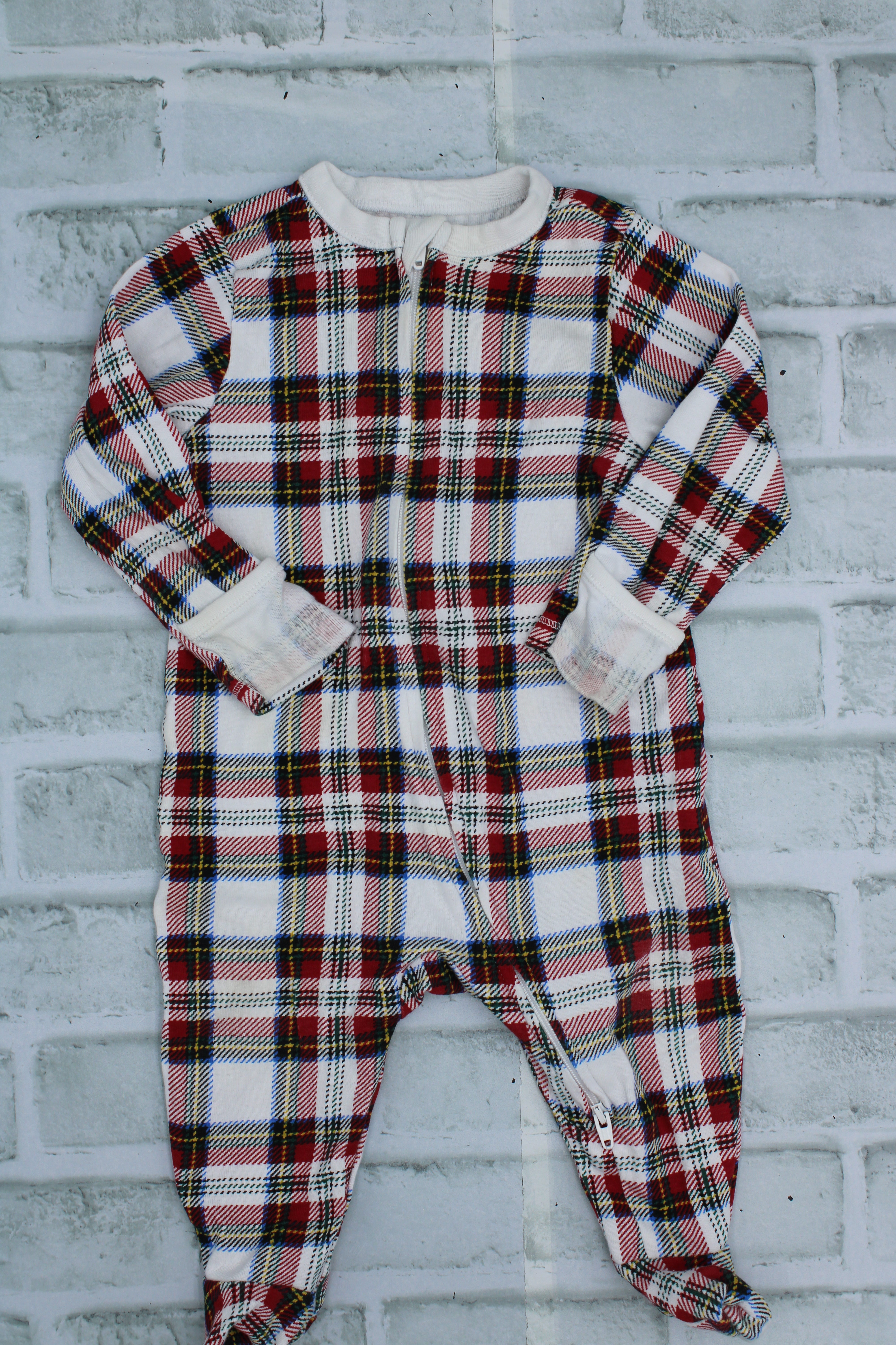 Old Navy, Red plaid with white sleeper LIKE NEW, 6-9 Months