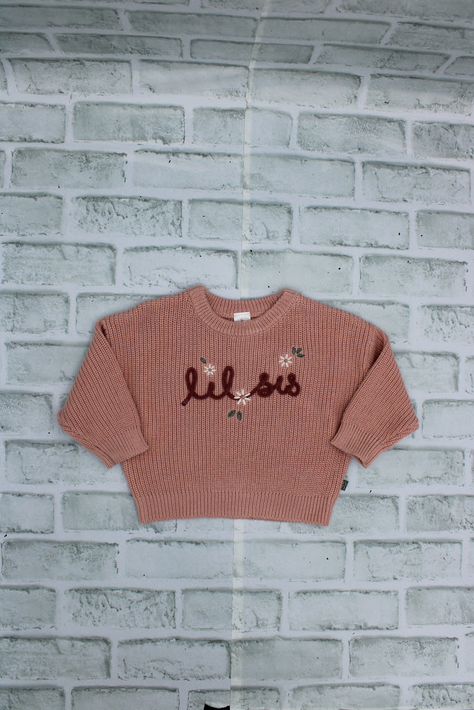 Modern Moments, Pink "Lil Sis" Knitted Sweater LIKE NEW, 6-9 Months