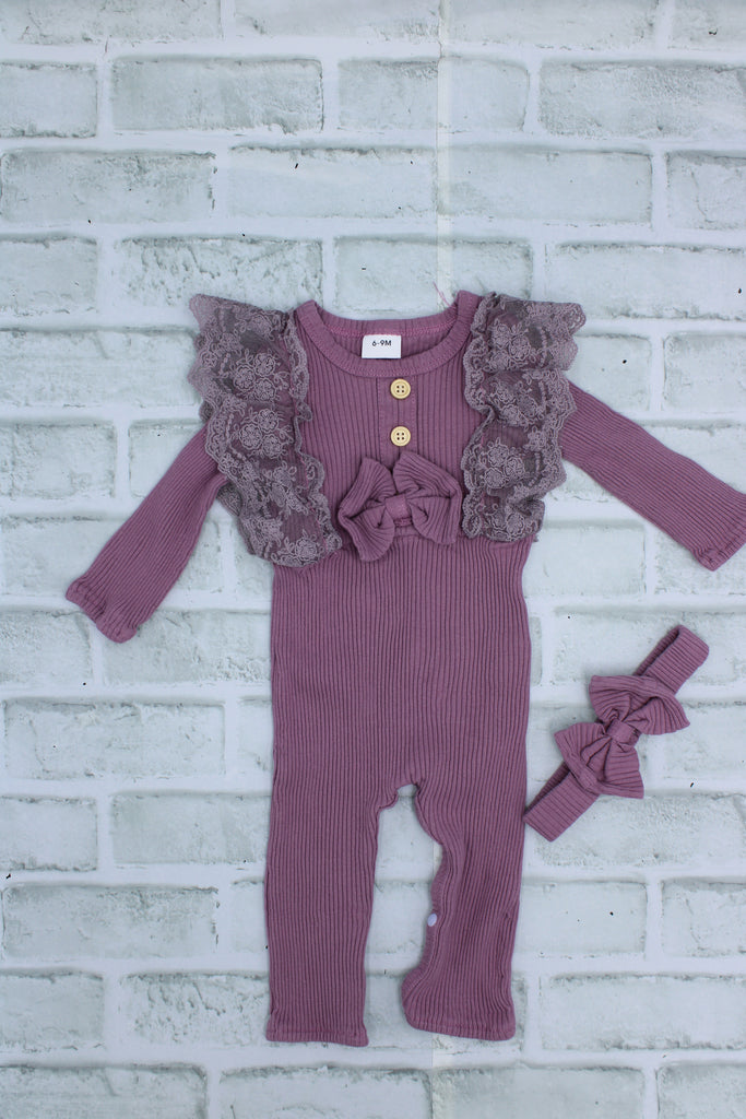 Unknown Brand, Purple onsies set with bow, 6-9 Months