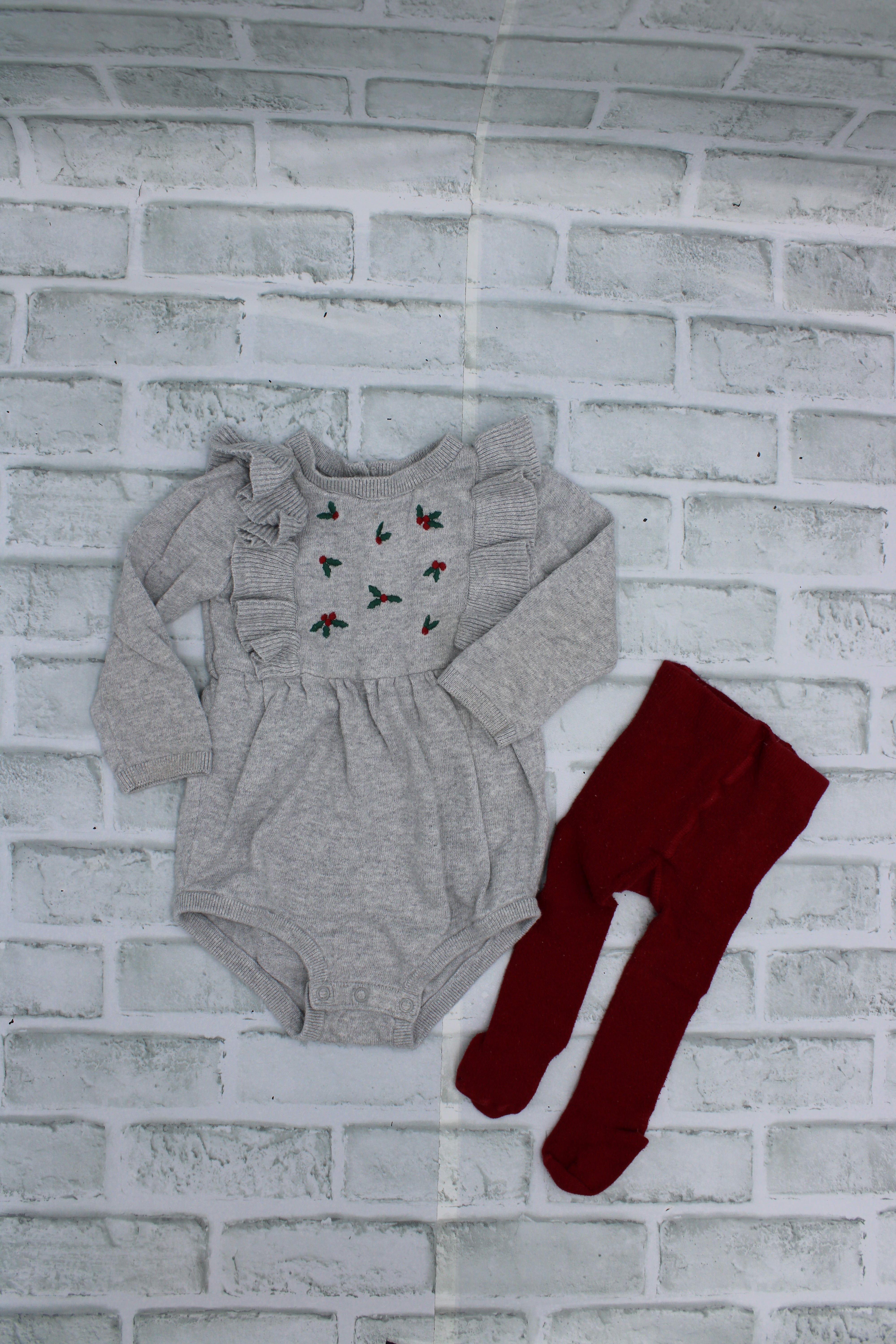 Carters, Grey Mistletoe Set with red tights, 9 Months