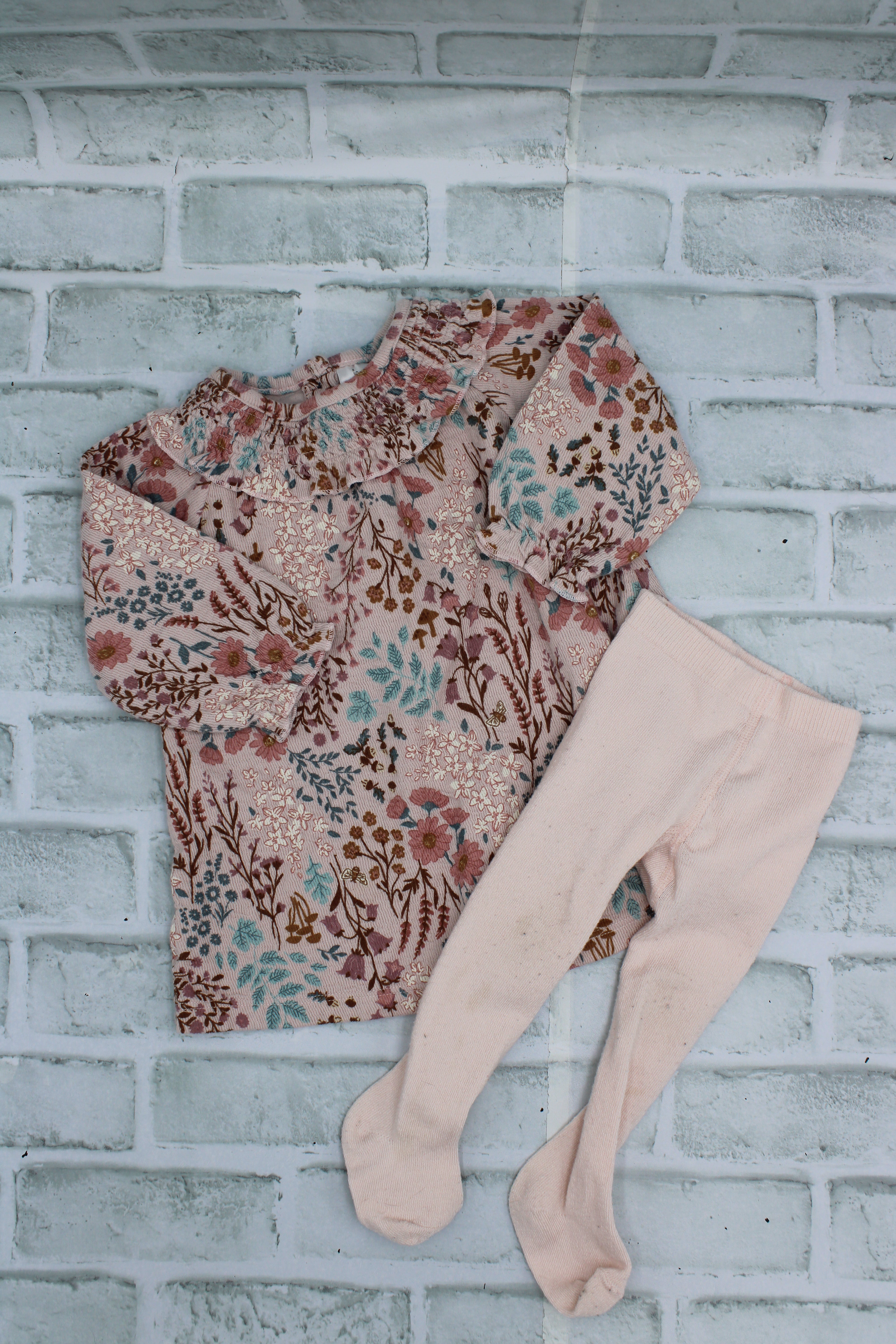 Modern Moments, Pink floral dress with tights, 6-9 Months